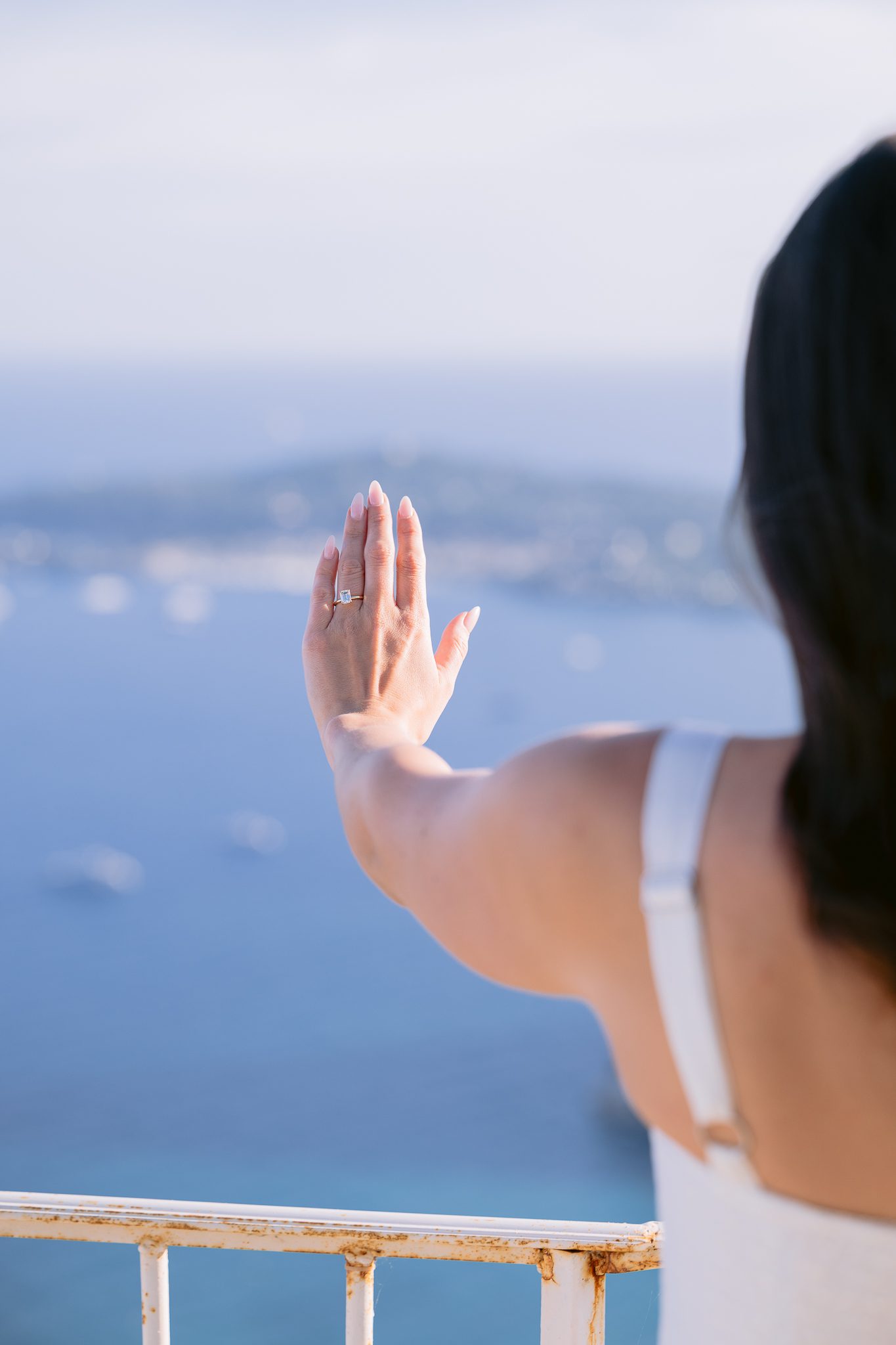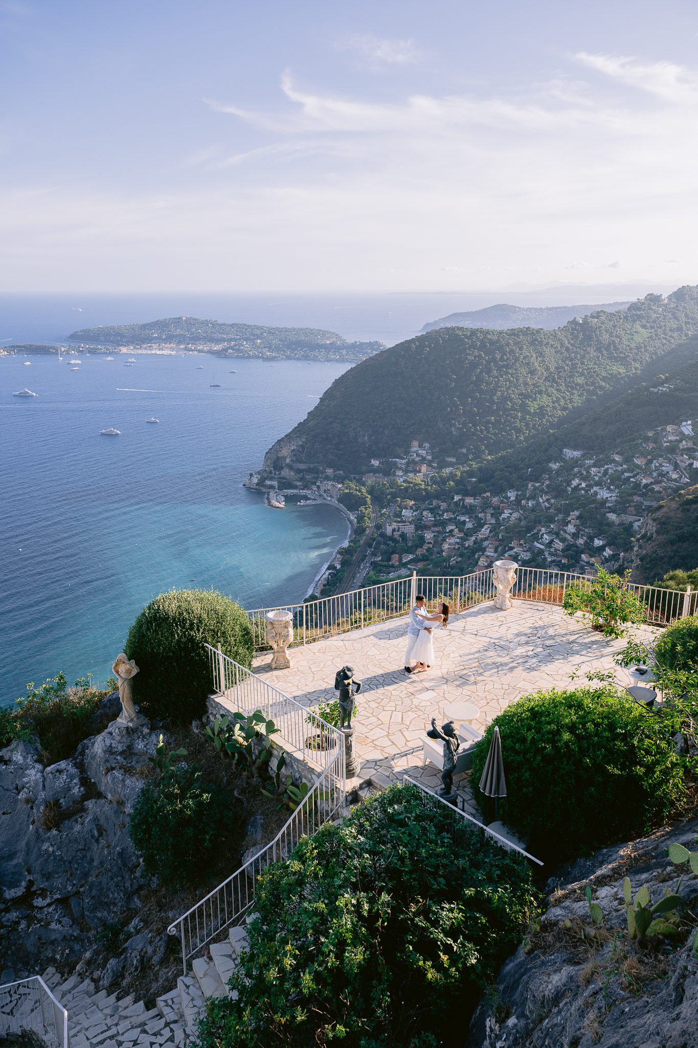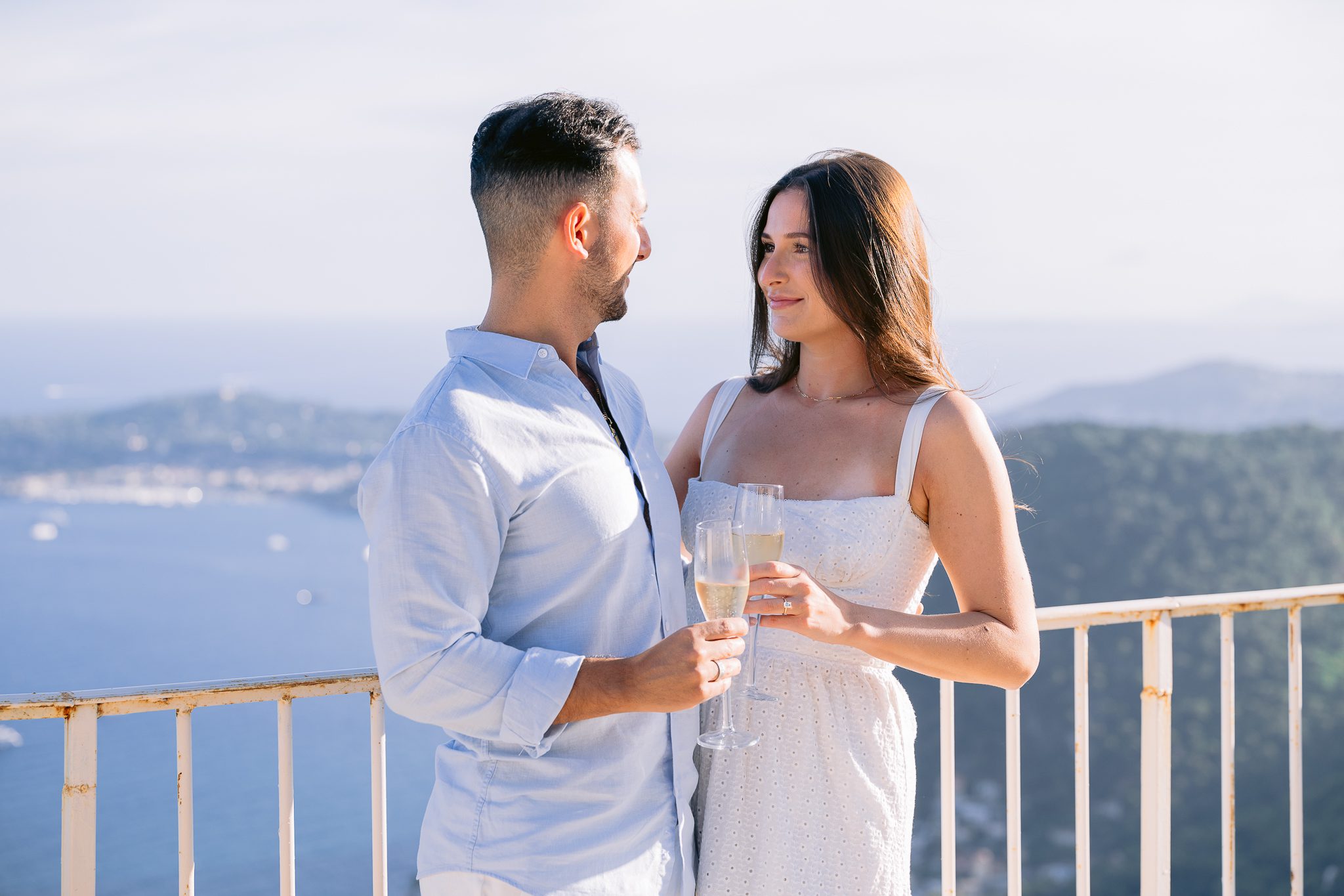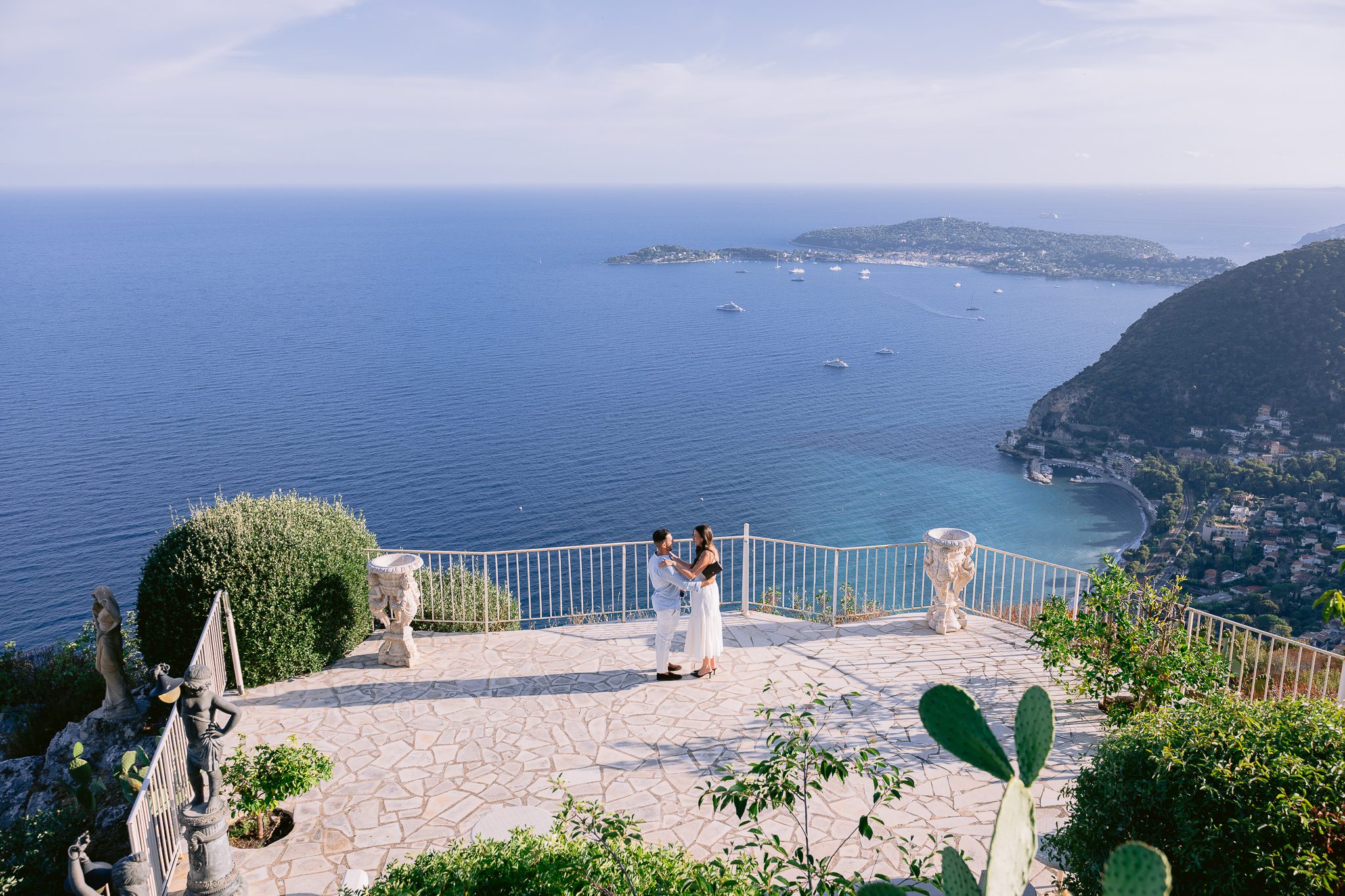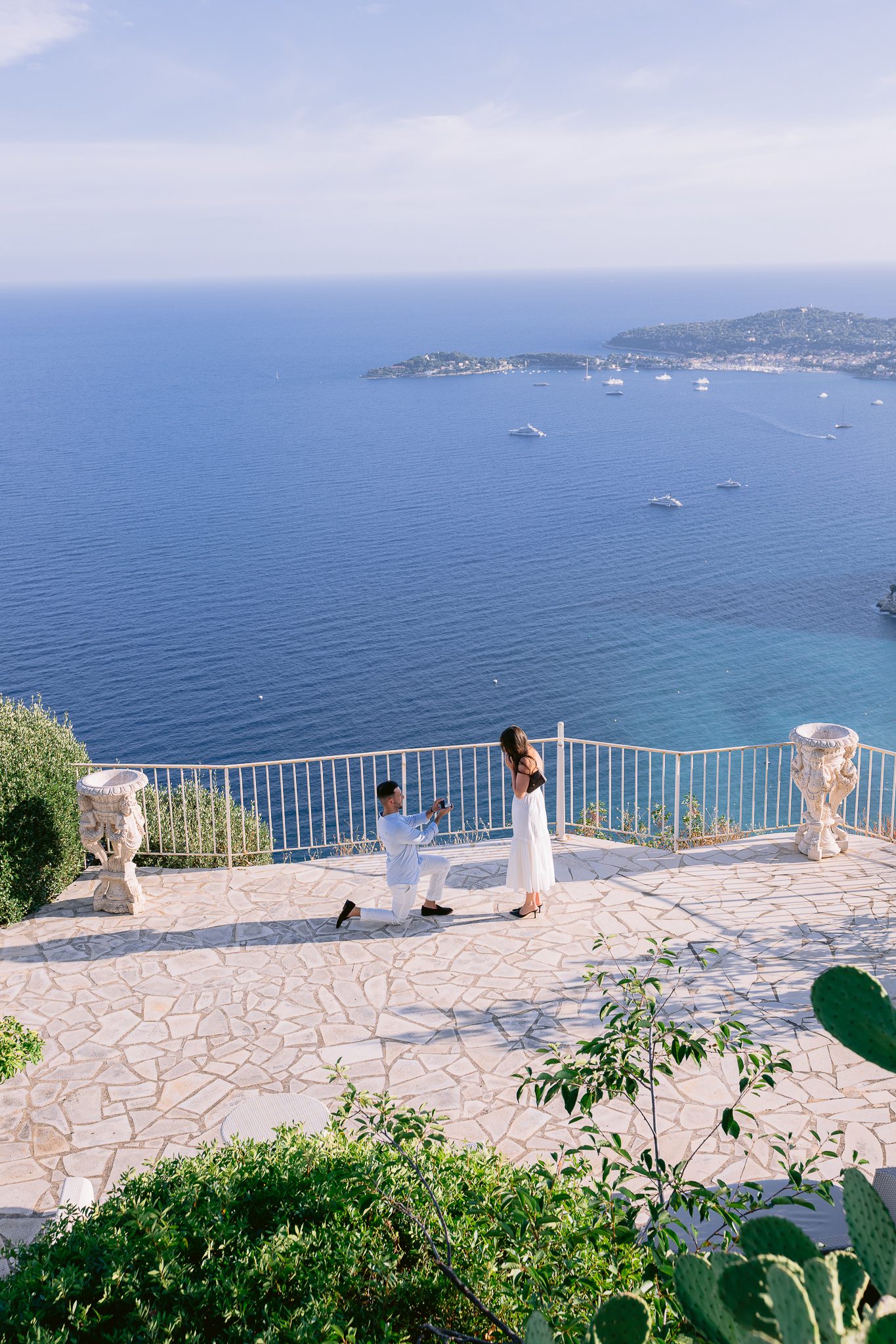 Wedding proposal at the Dôme du Château de La Chèvre d'Or with panoramic sea view