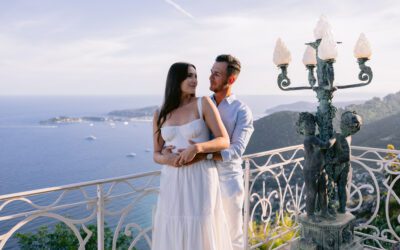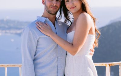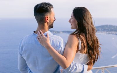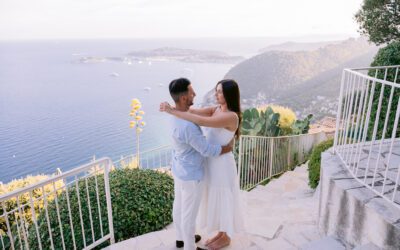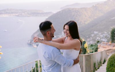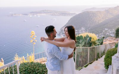 Discover this marriage proposal at the Jardins de La Chèvre d'Or in Èze, in a lush, romantic and elegant setting, with sea views and photos after the proposal.