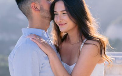 I love photographing this type of proposal because nothing distracts from the emotion. The couple takes center stage. The terrace, the sea and the light carry the scene, but never overwhelm it. The result is very pure, very elegant, often very powerful images.