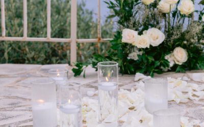 The floral arrangements for this wedding proposal were particularly successful. White roses, fine foliage, a very balanced composition, a few petals on the ground, glass candles, and a setting that remained sober despite the generosity of the decor. That's what I love most about this type of installation: when it's beautiful, present and refined, but never overtakes the moment.