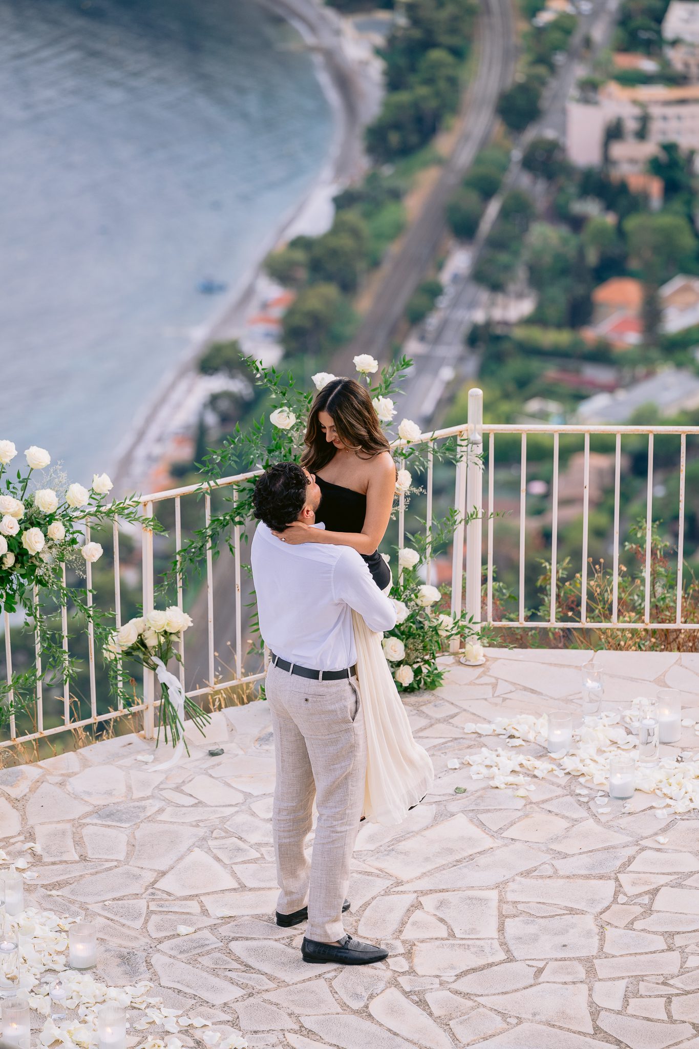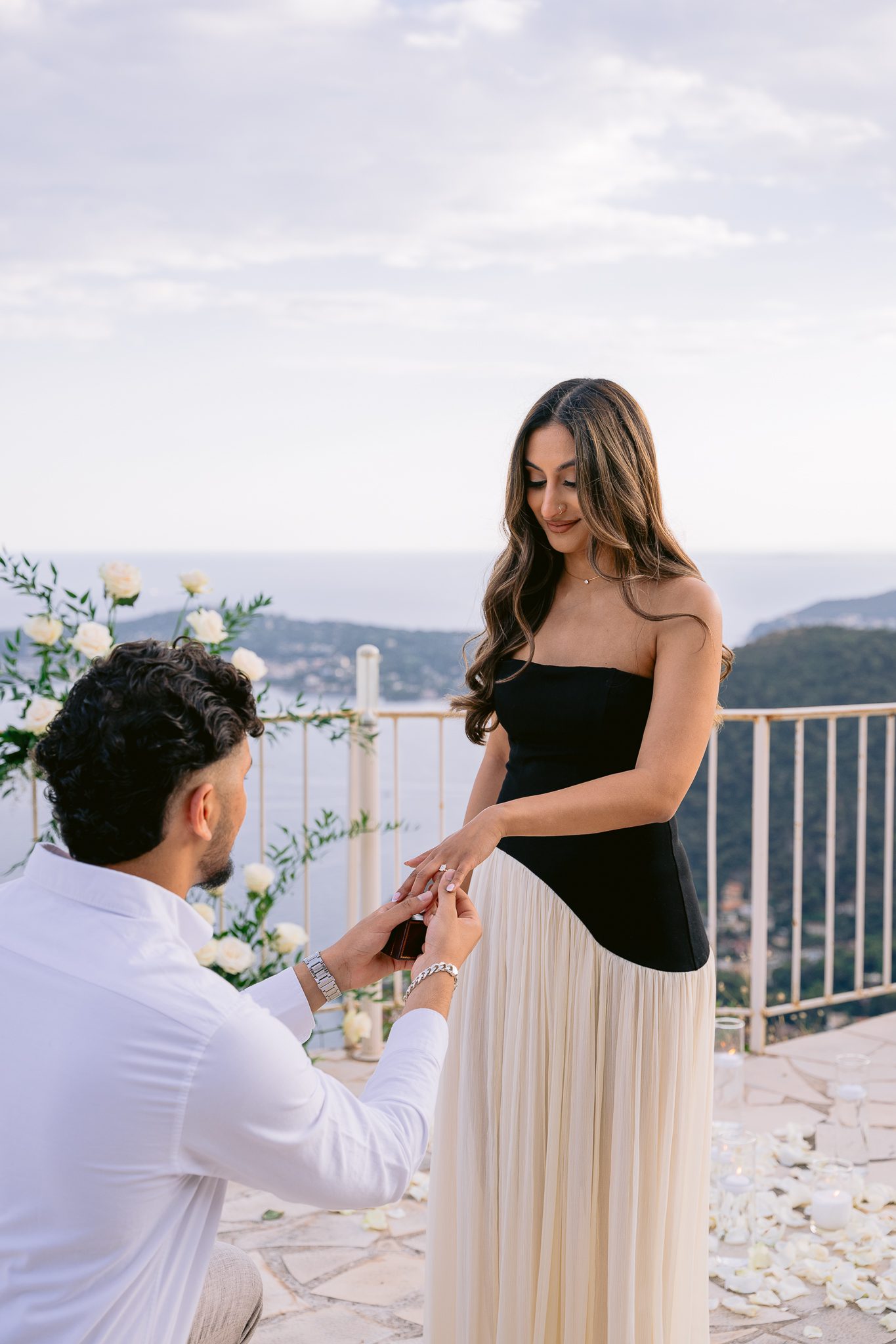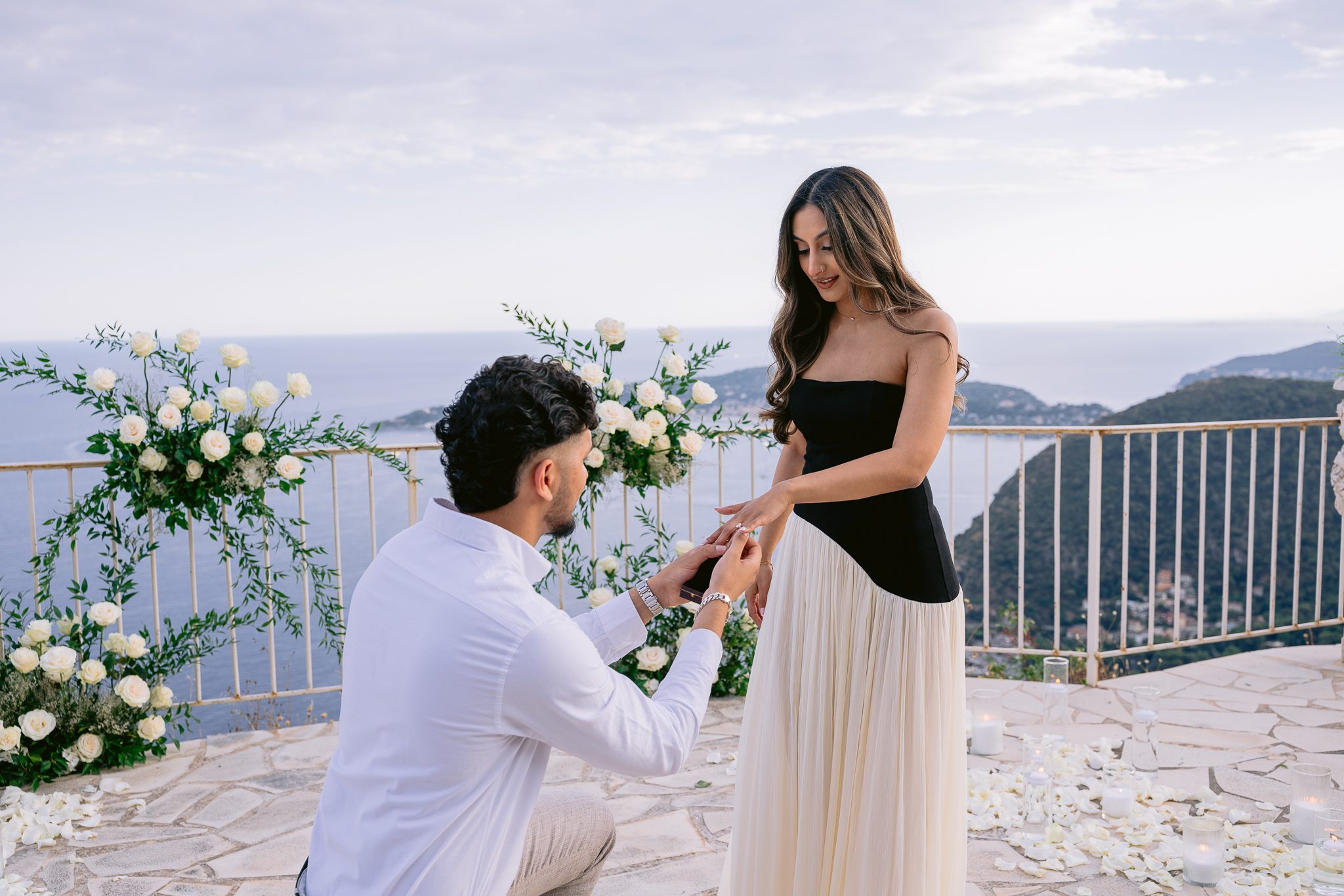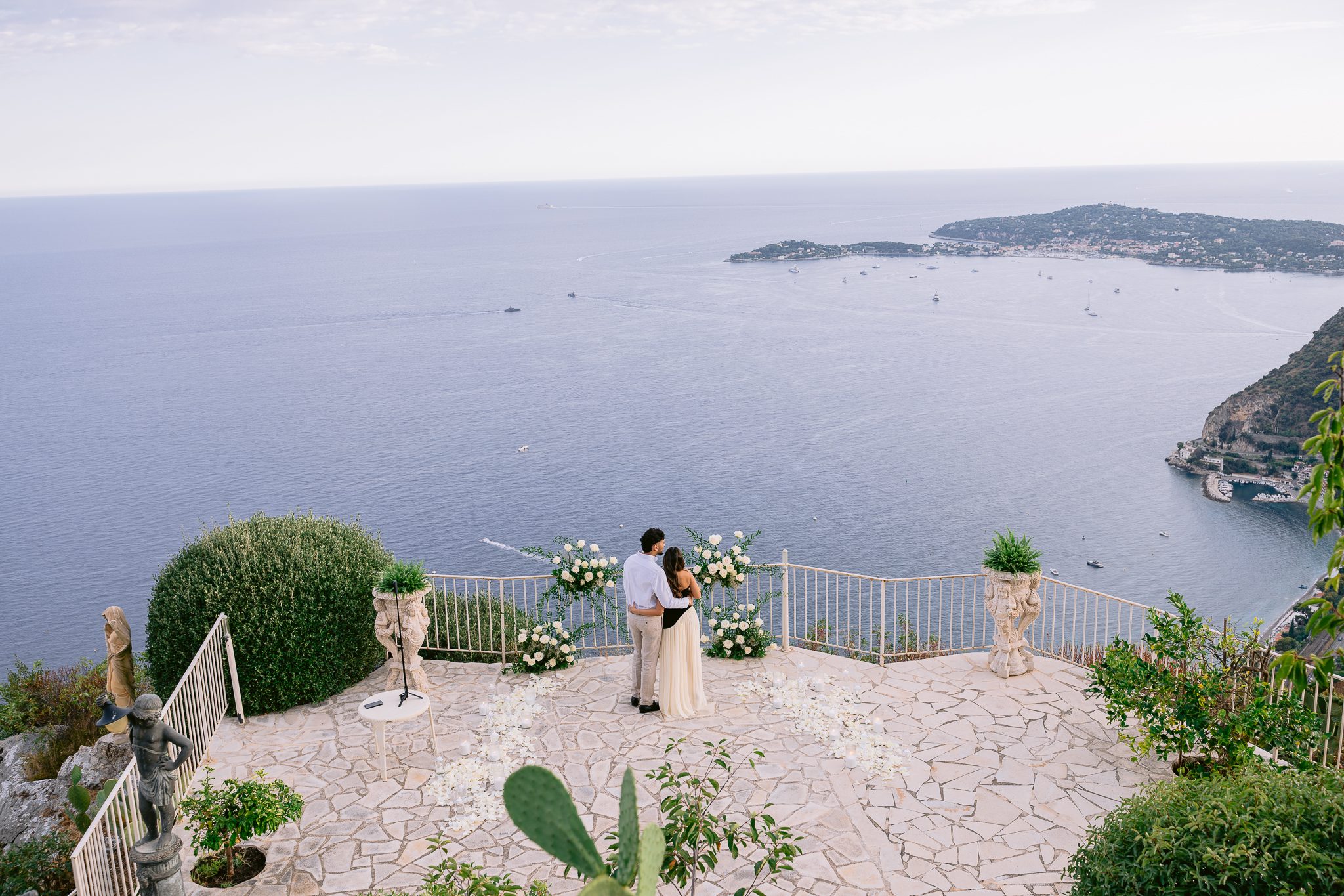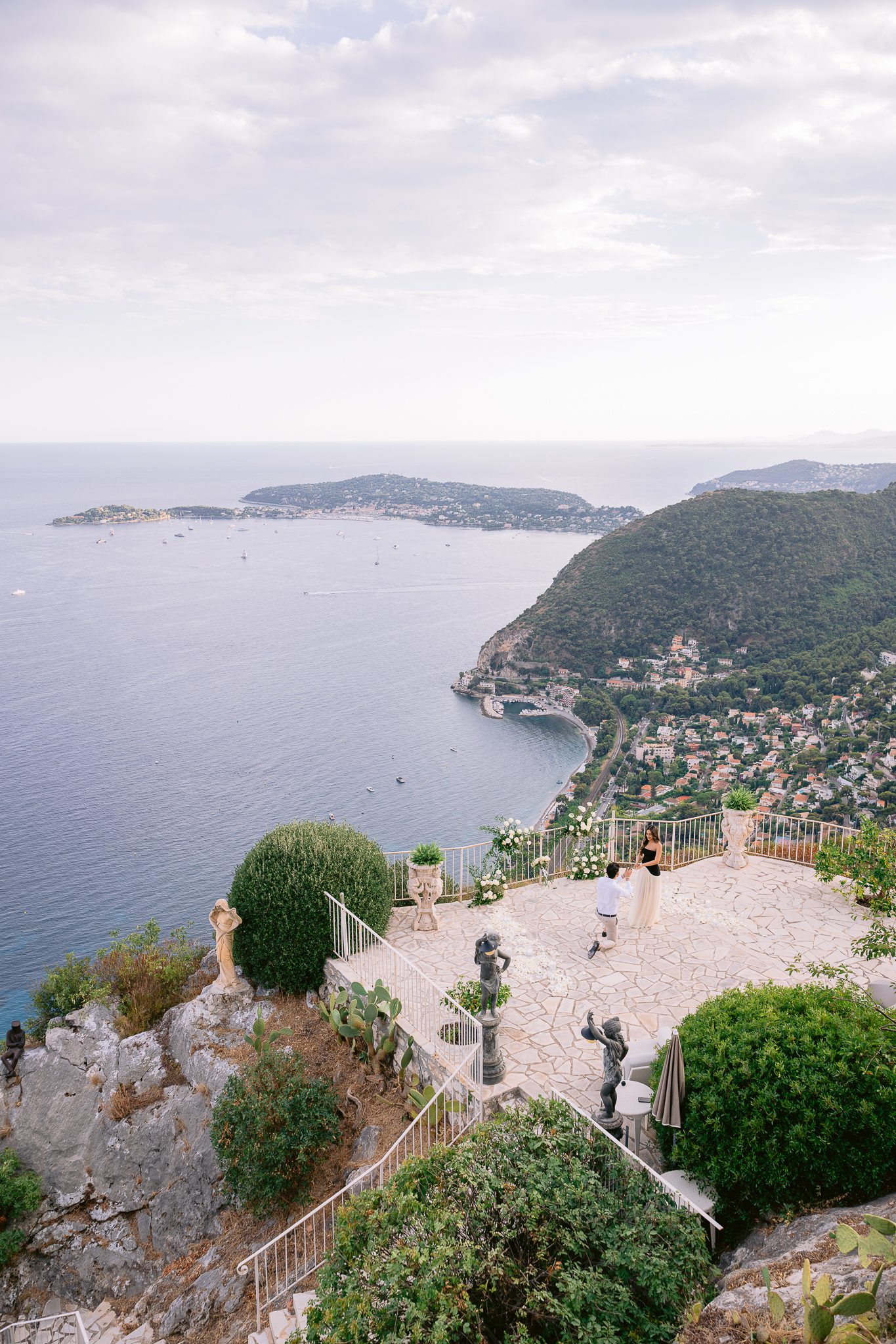 Marriage proposal at La Chèvre d'Or on the third terrace of Café du Jardin