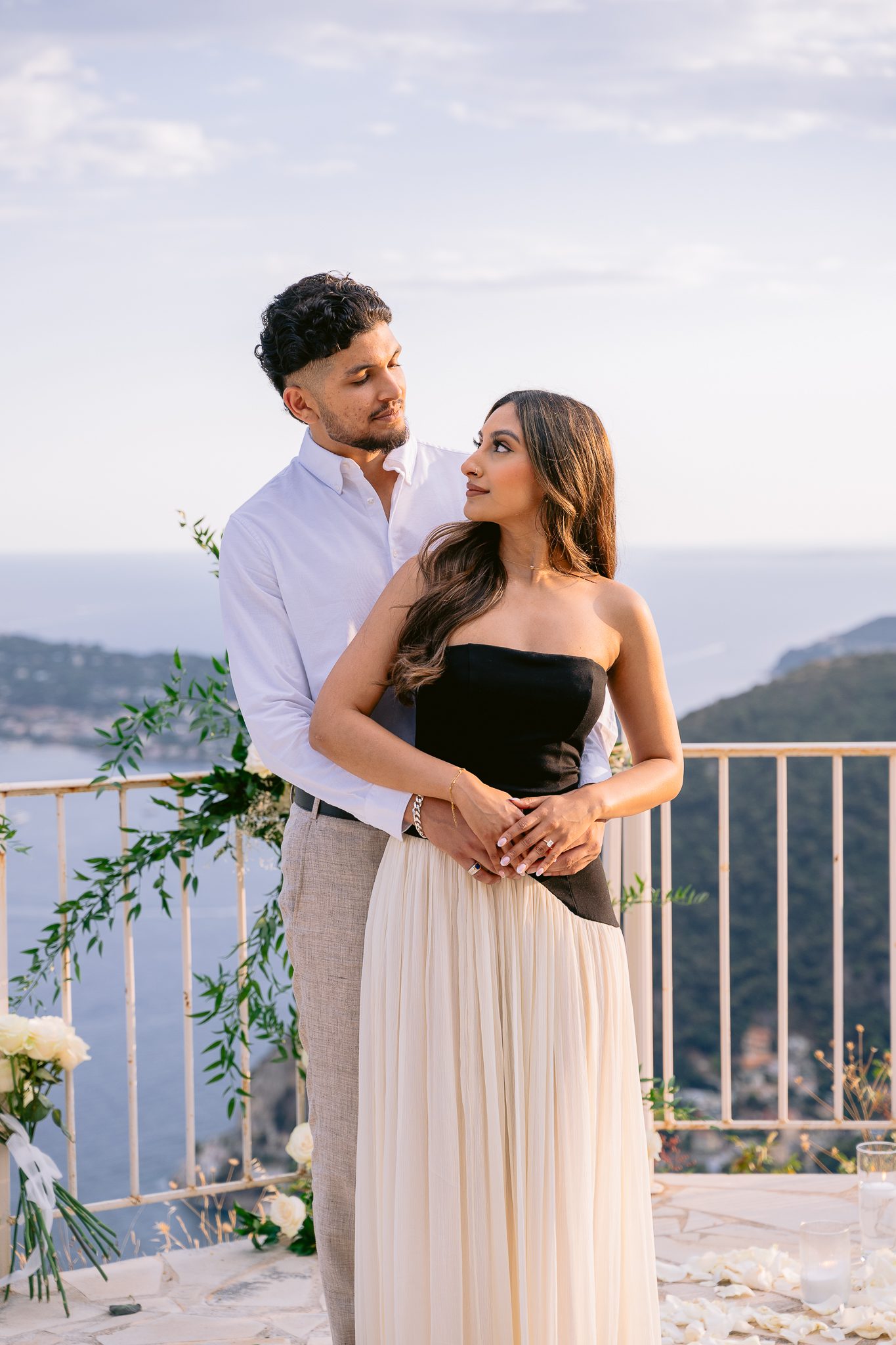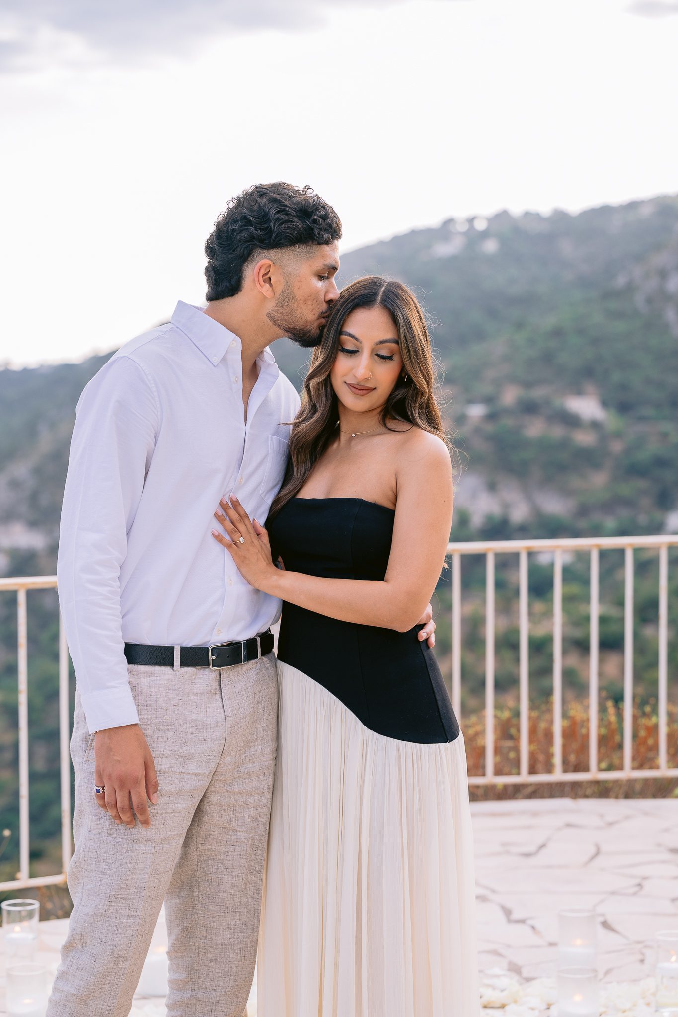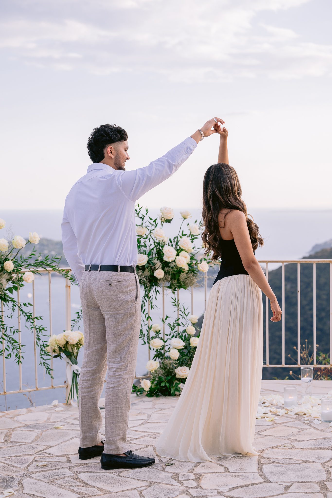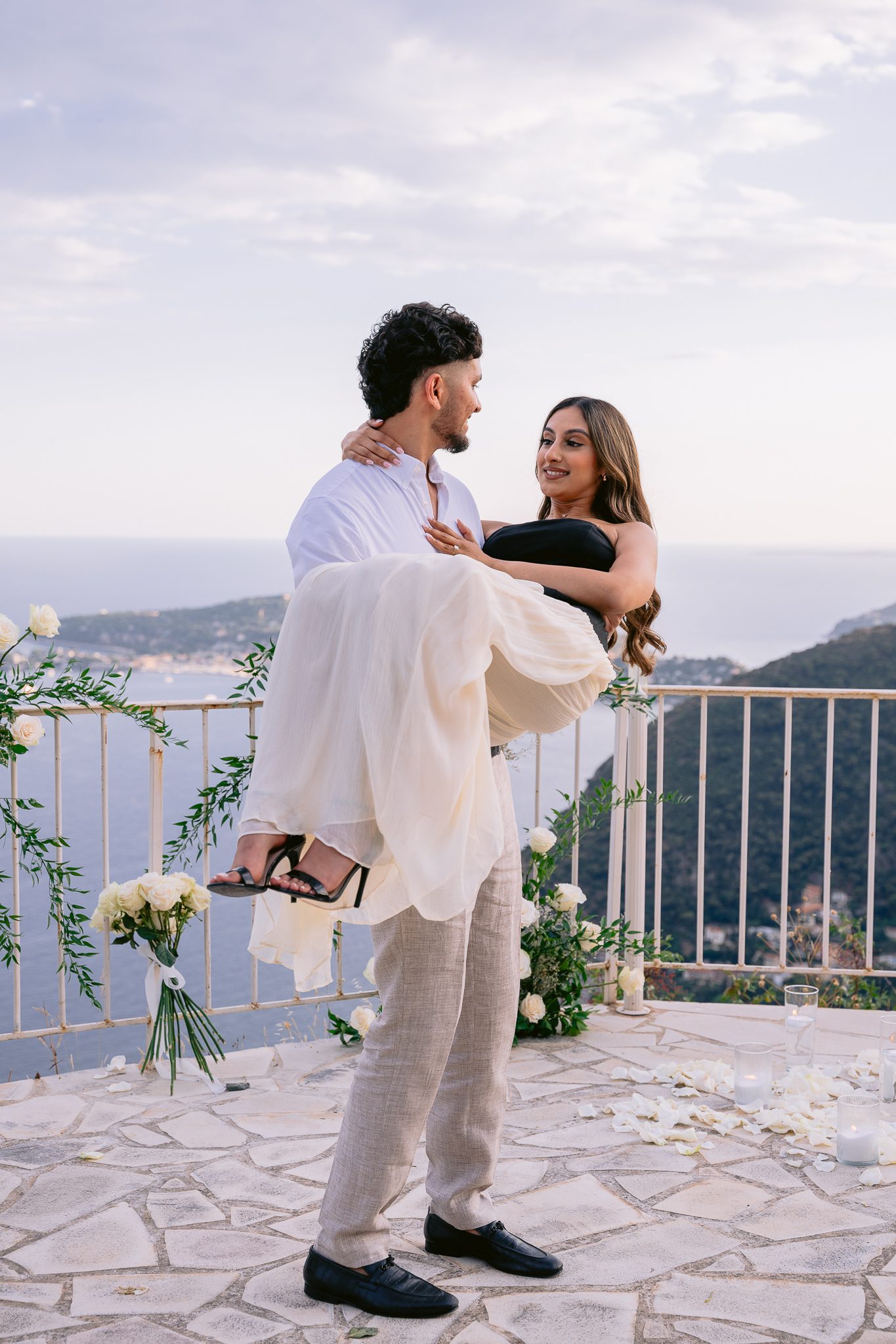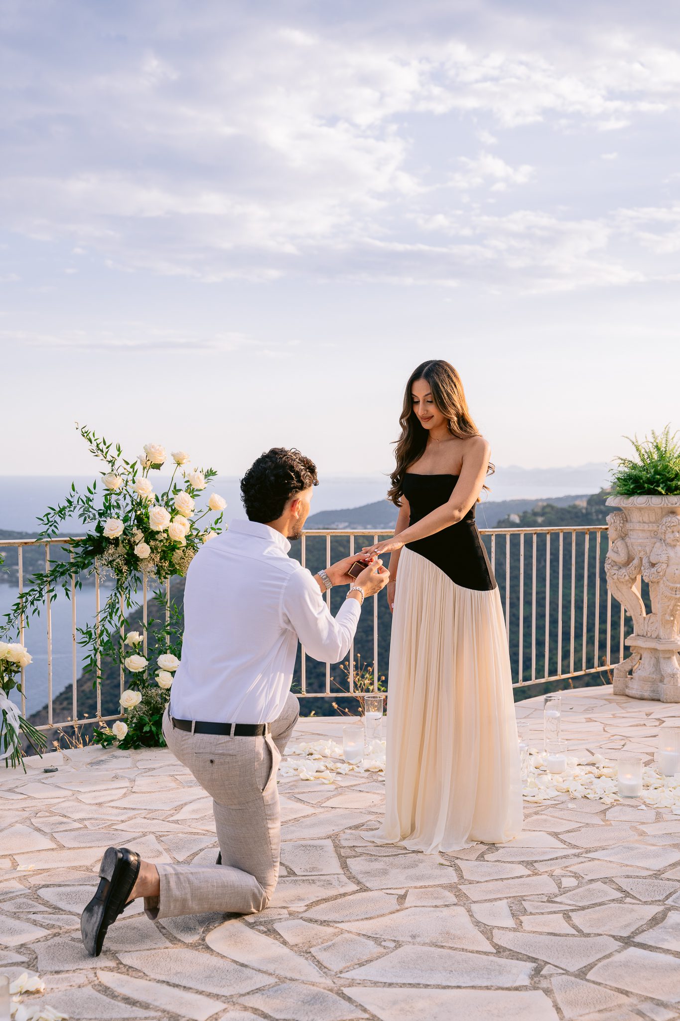 Marriage proposal at La Chèvre d'Or on the third terrace of Café du Jardin