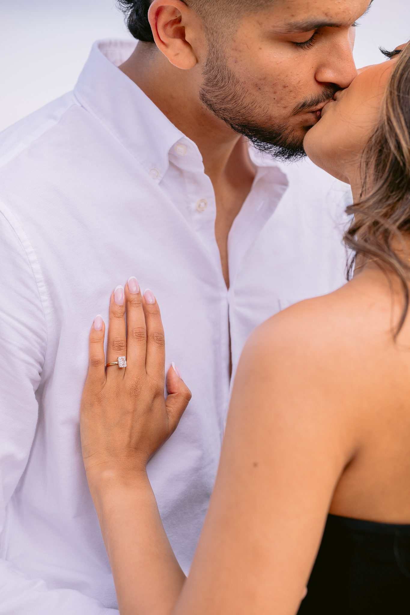 I love proposals in this type of setting because they have a real presence. In the photos, the couple is not enclosed in a setting. They stand out against a vast, prestigious, highly recognizable landscape, giving the moment an almost cinematic dimension. And yet, despite this grandeur, everything remained very elegant and intimate.