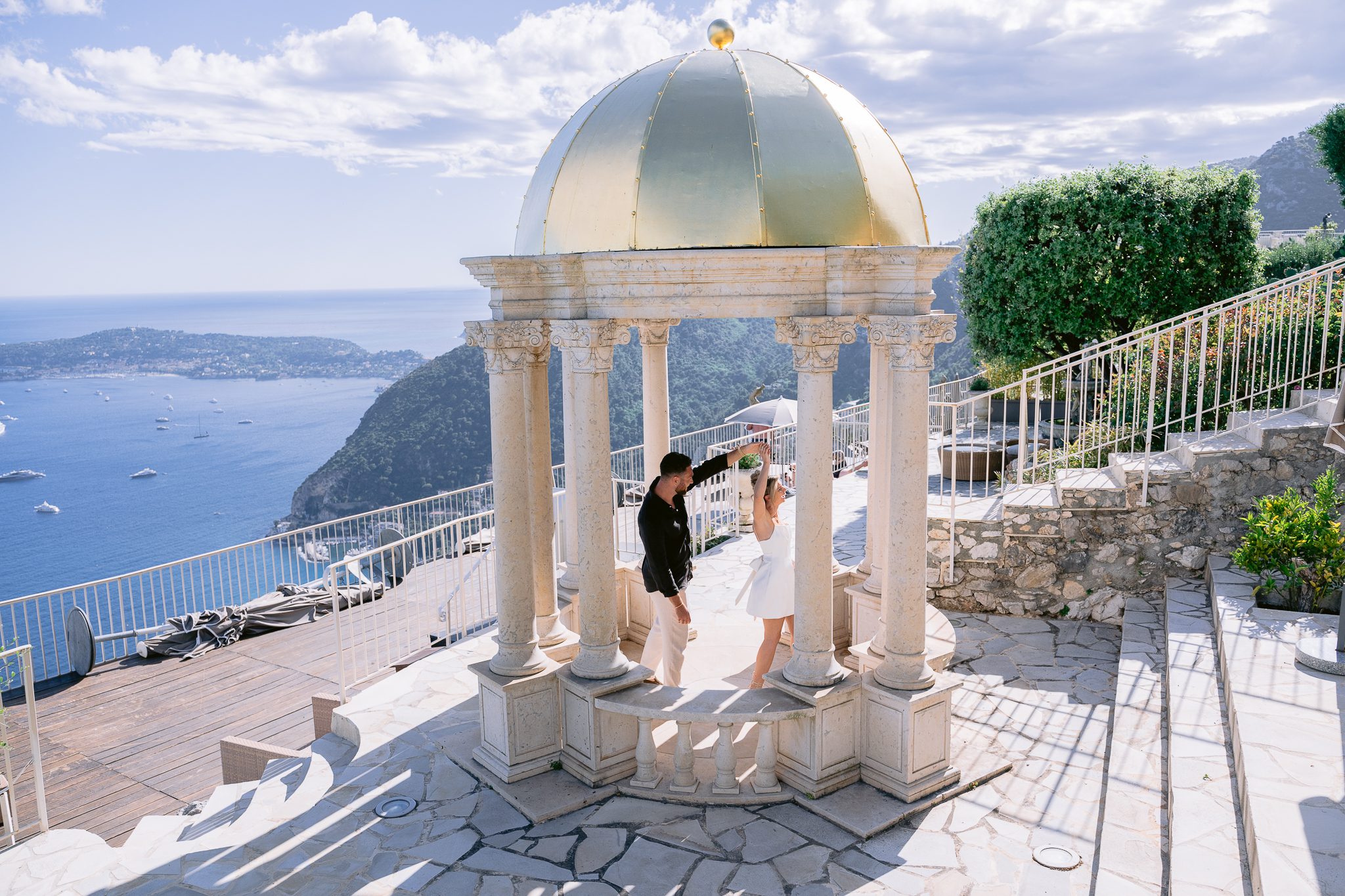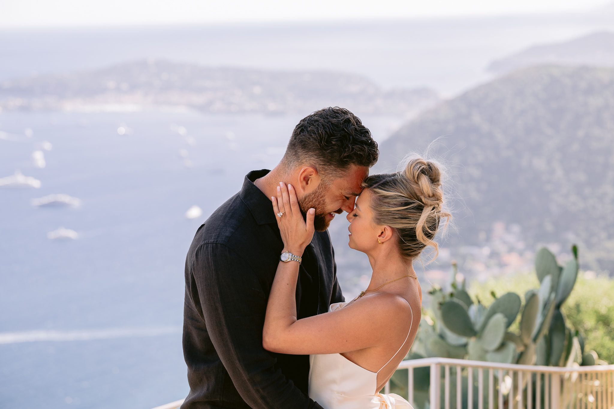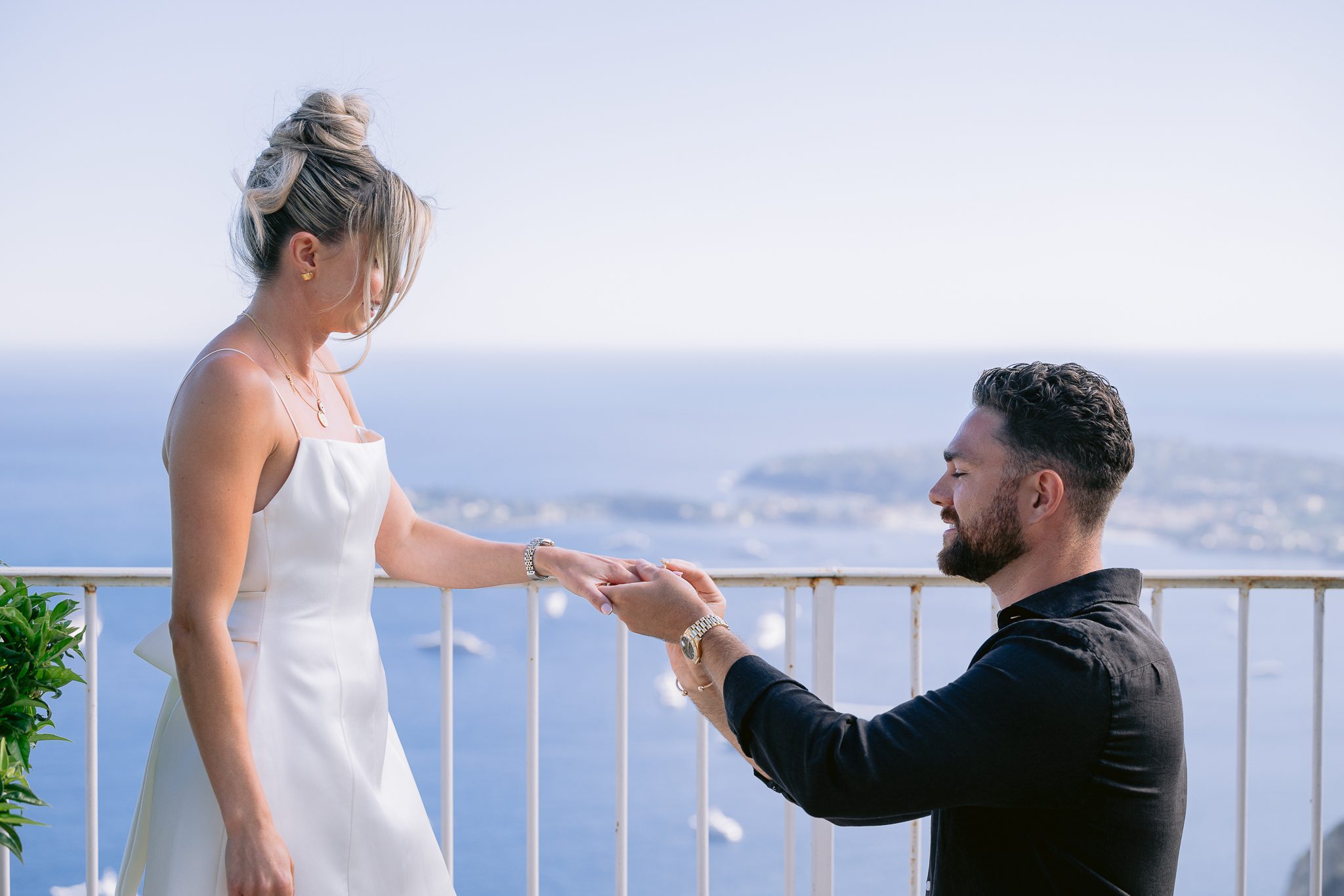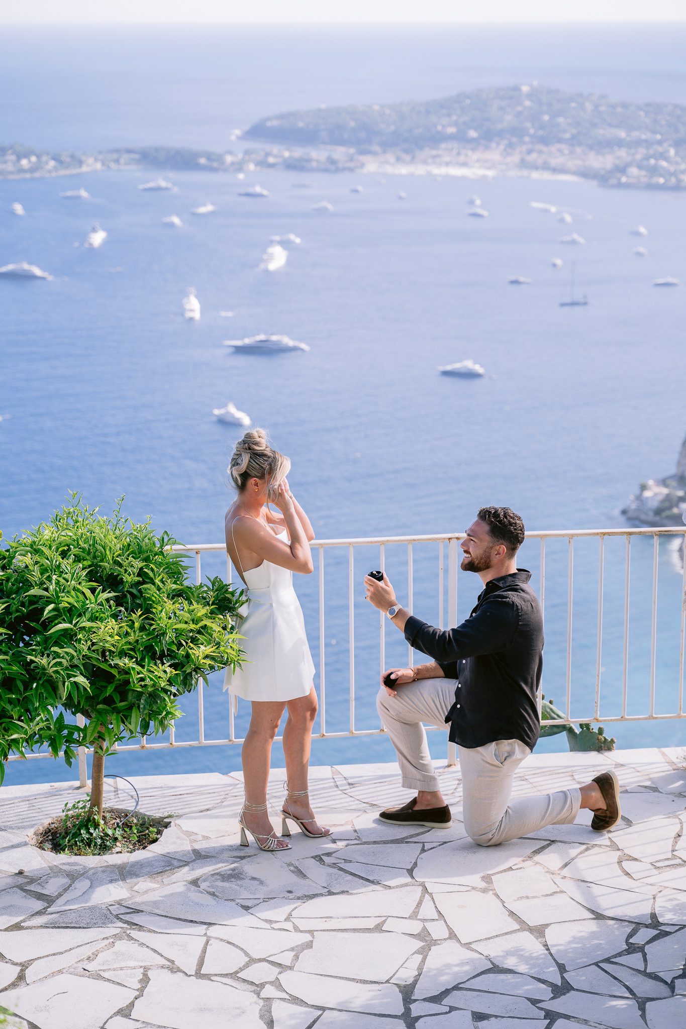 Wedding proposal at the Dôme du Château de La Chèvre d'Or with panoramic sea view