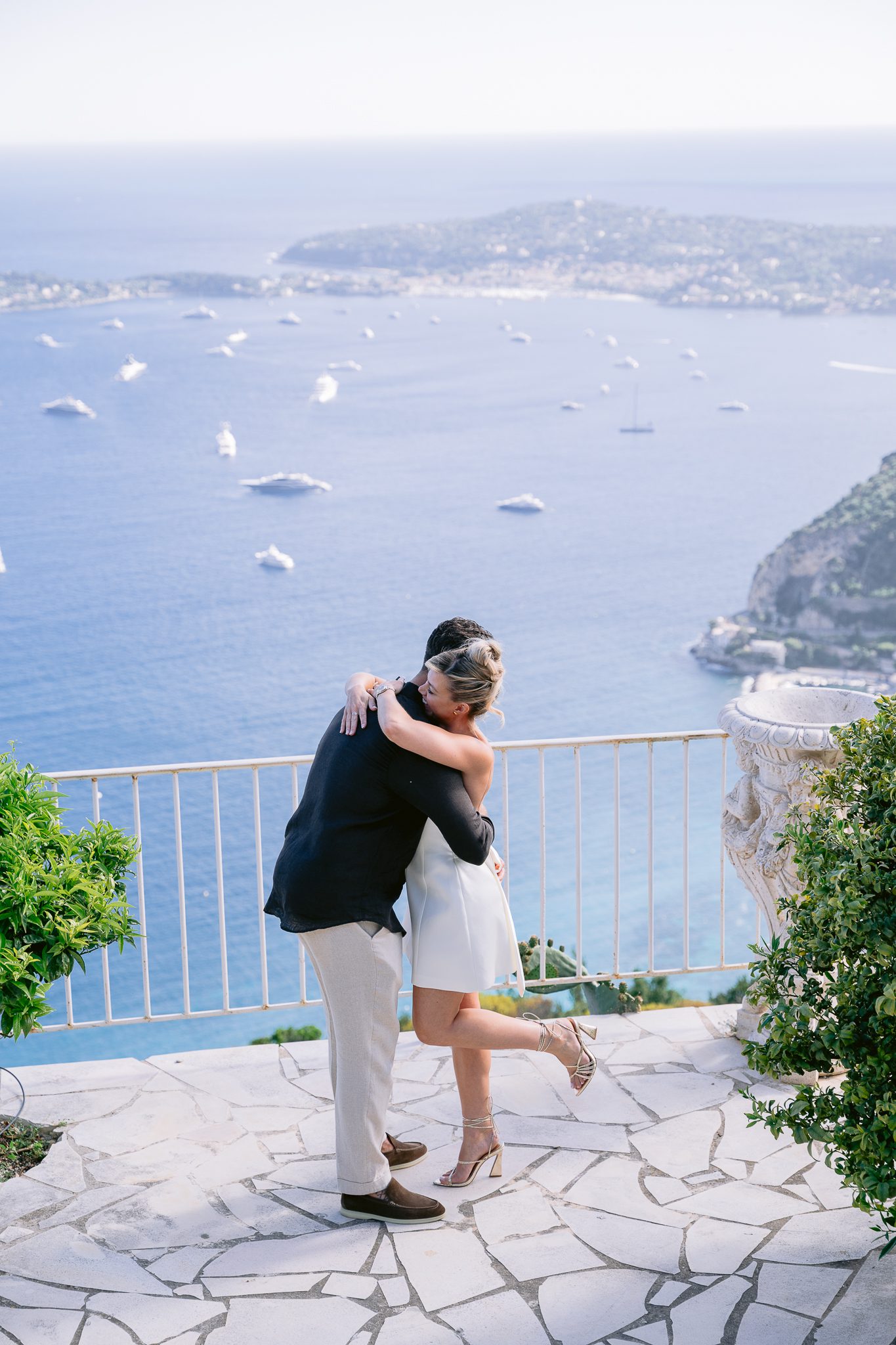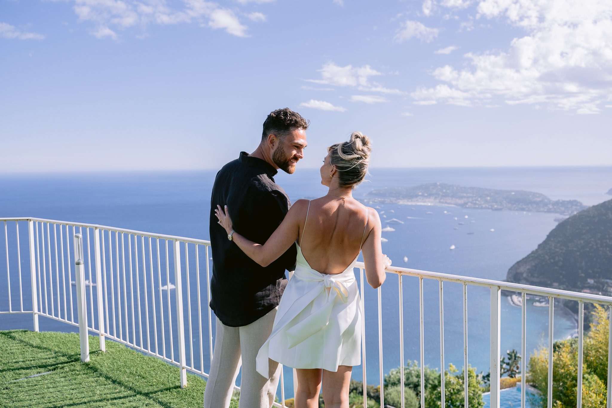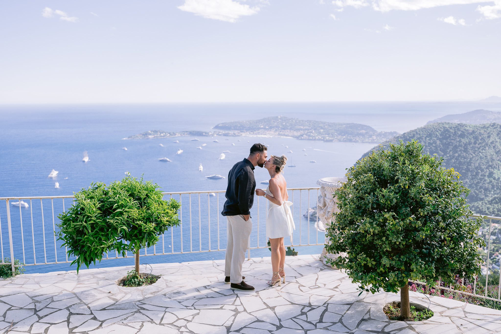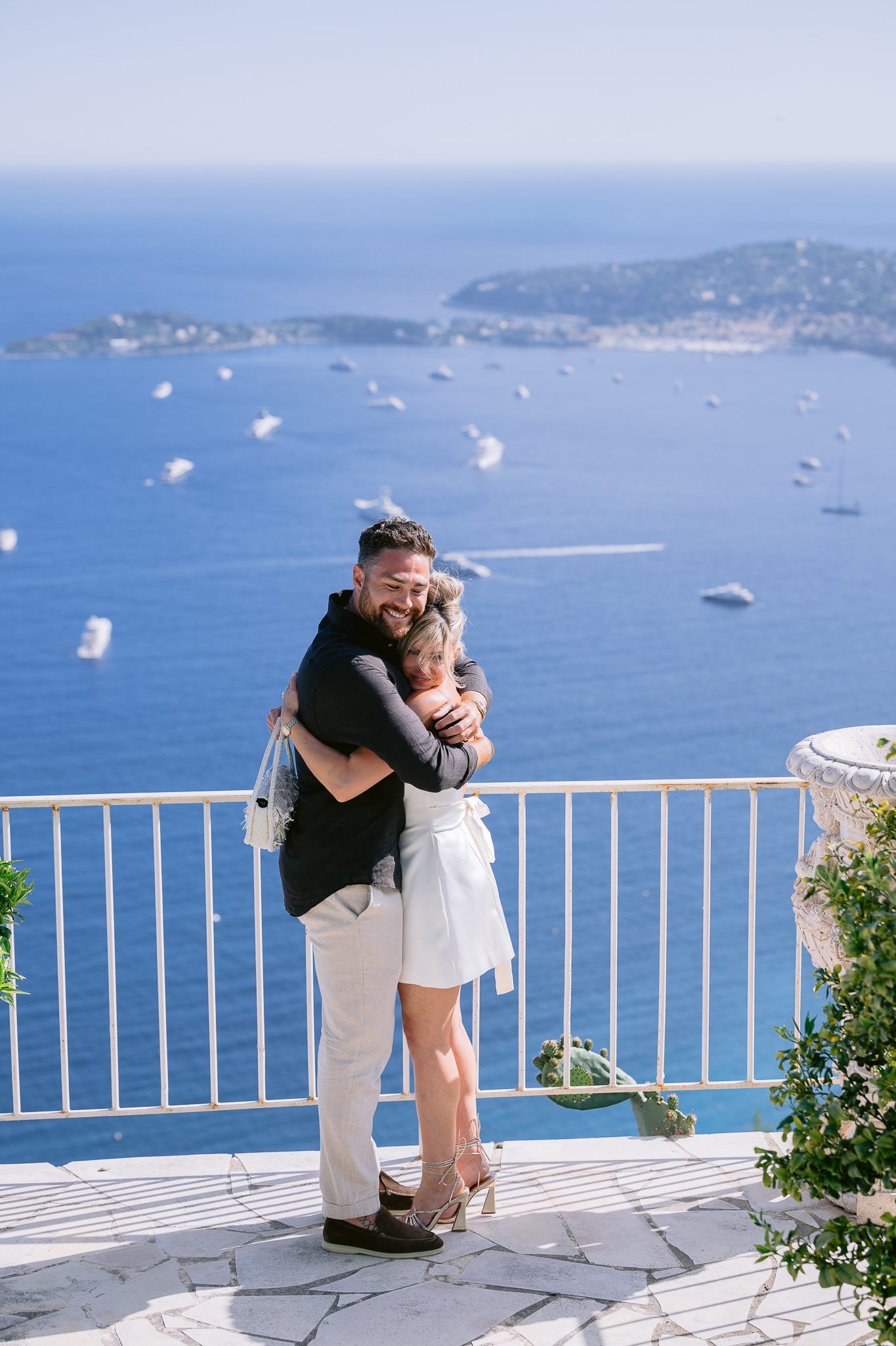 Wedding proposal at the Dôme du Château de La Chèvre d'Or with panoramic sea view