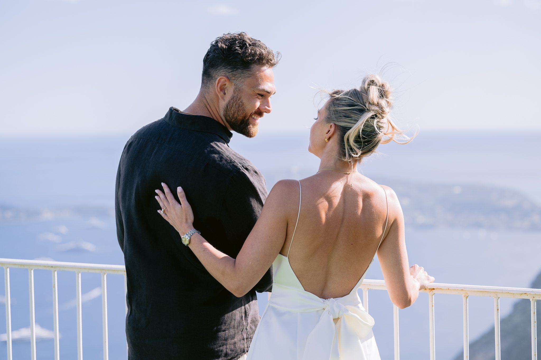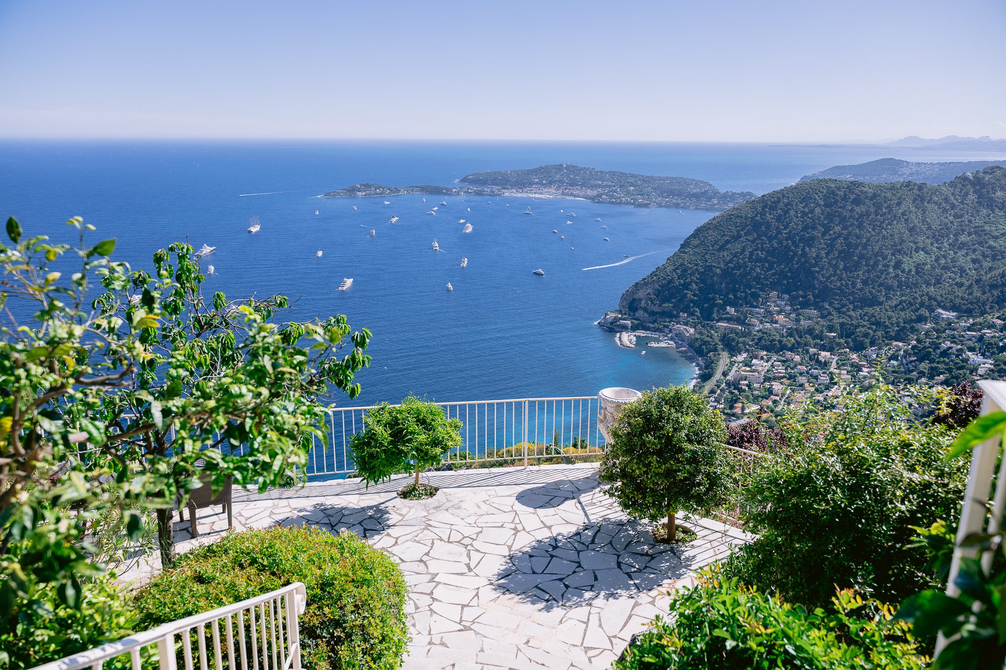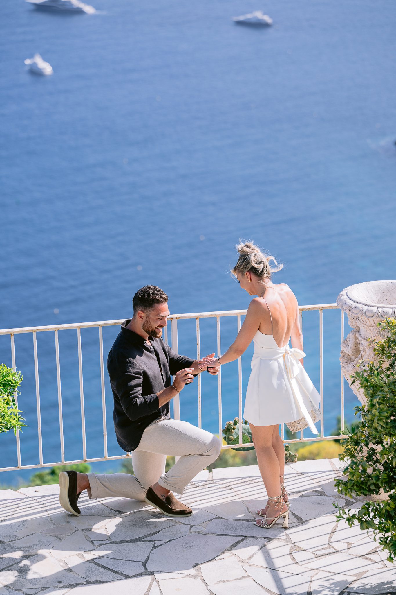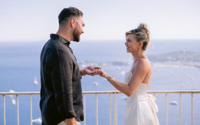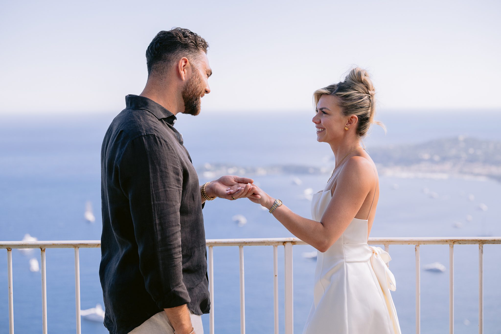 Wedding proposal at the Dôme du Château de La Chèvre d'Or with panoramic sea view