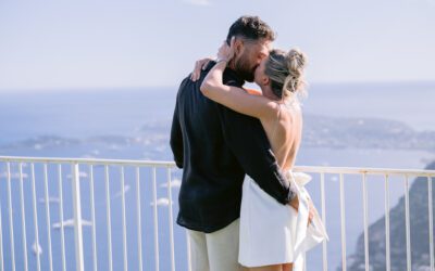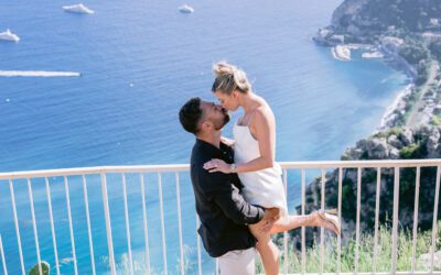 Discover this wedding proposal at the Dôme de La Chèvre d'Or in Èze, with panoramic sea views, romantic decor and couple photos in one of the most spectacular locations on the Côte d'Azur.