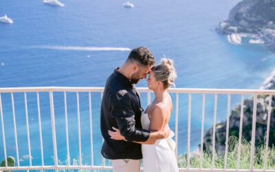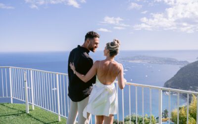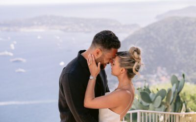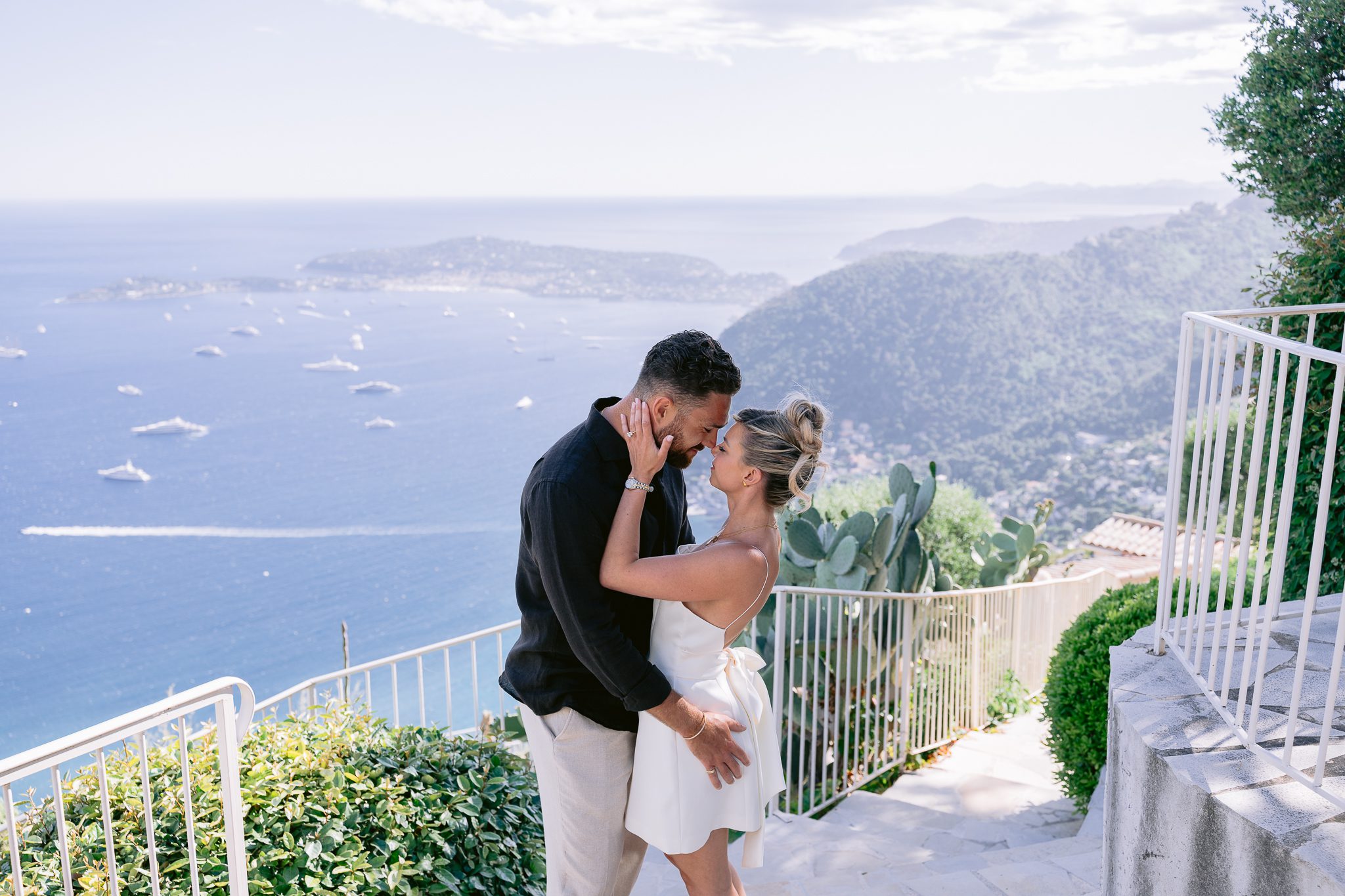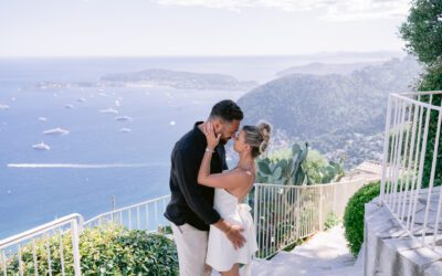 Discover this marriage proposal at the Jardins de La Chèvre d'Or in Èze, in a lush, romantic and elegant setting, with sea views and photos after the proposal.