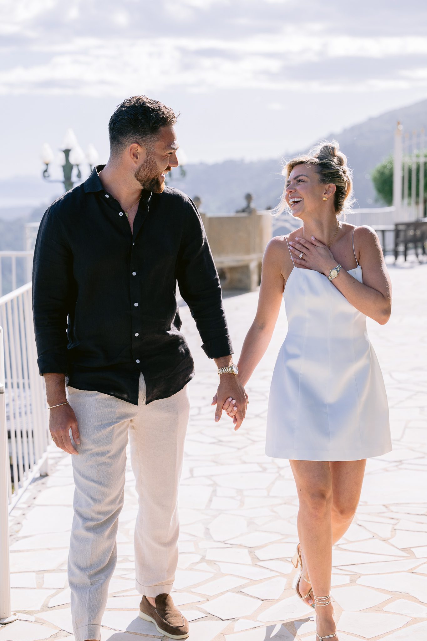 La Chèvre d'Or offers very different types of wedding proposal, depending on the format chosen. Some focus on the moment of the proposal, others on a beautiful staging, and still others, as here, extend the experience with a real engagement photo session on the spot.