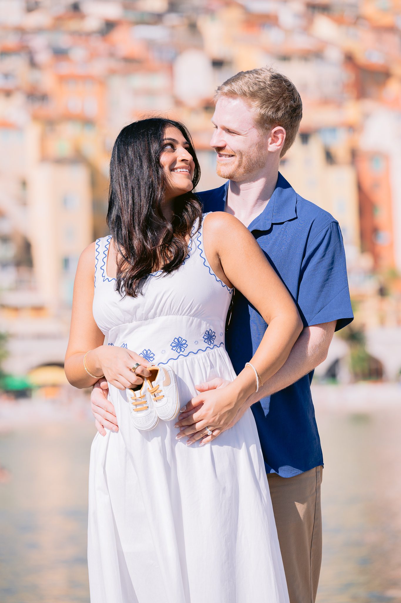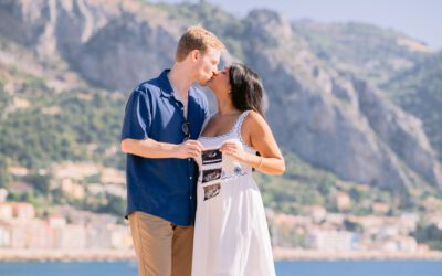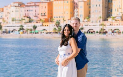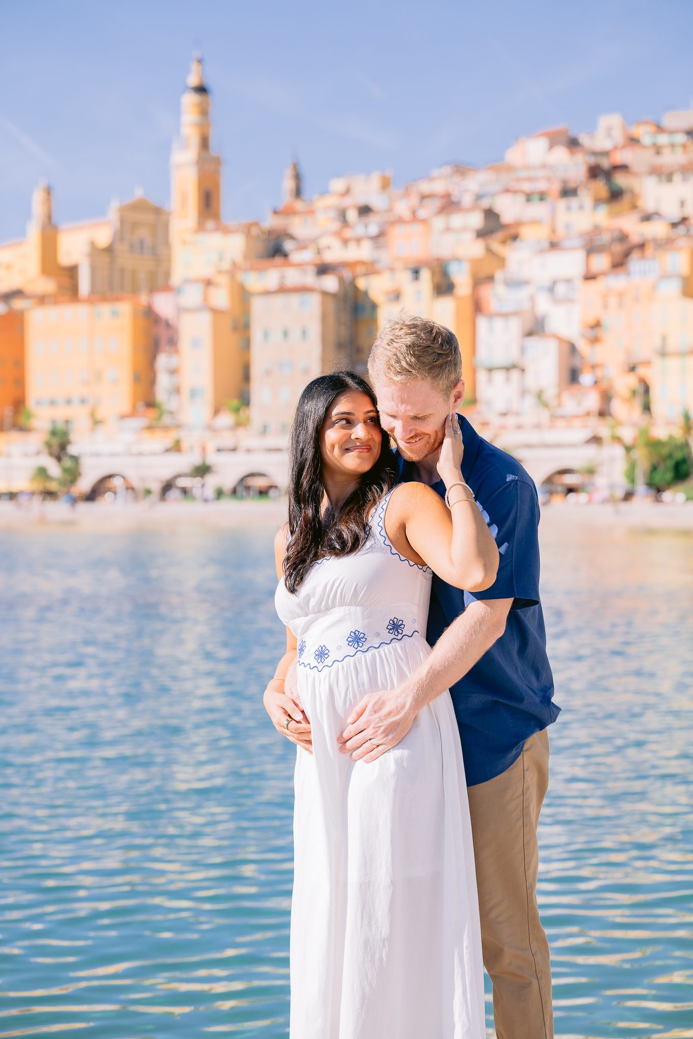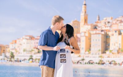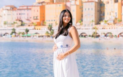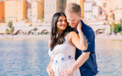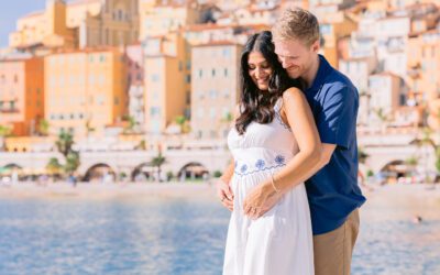 Treat yourself to a pregnancy photo session in Menton, between the sea, the colorful old town and the Mediterranean light, for soft, natural and elegant images.