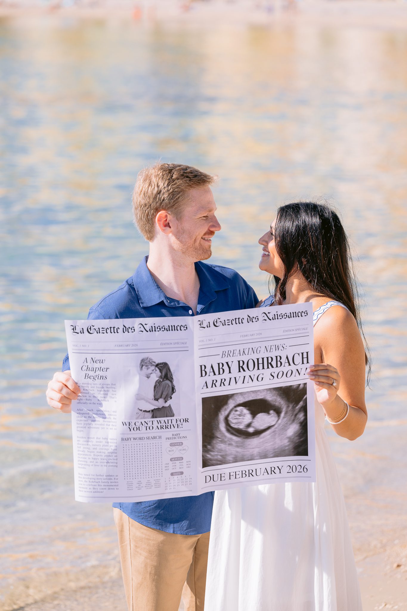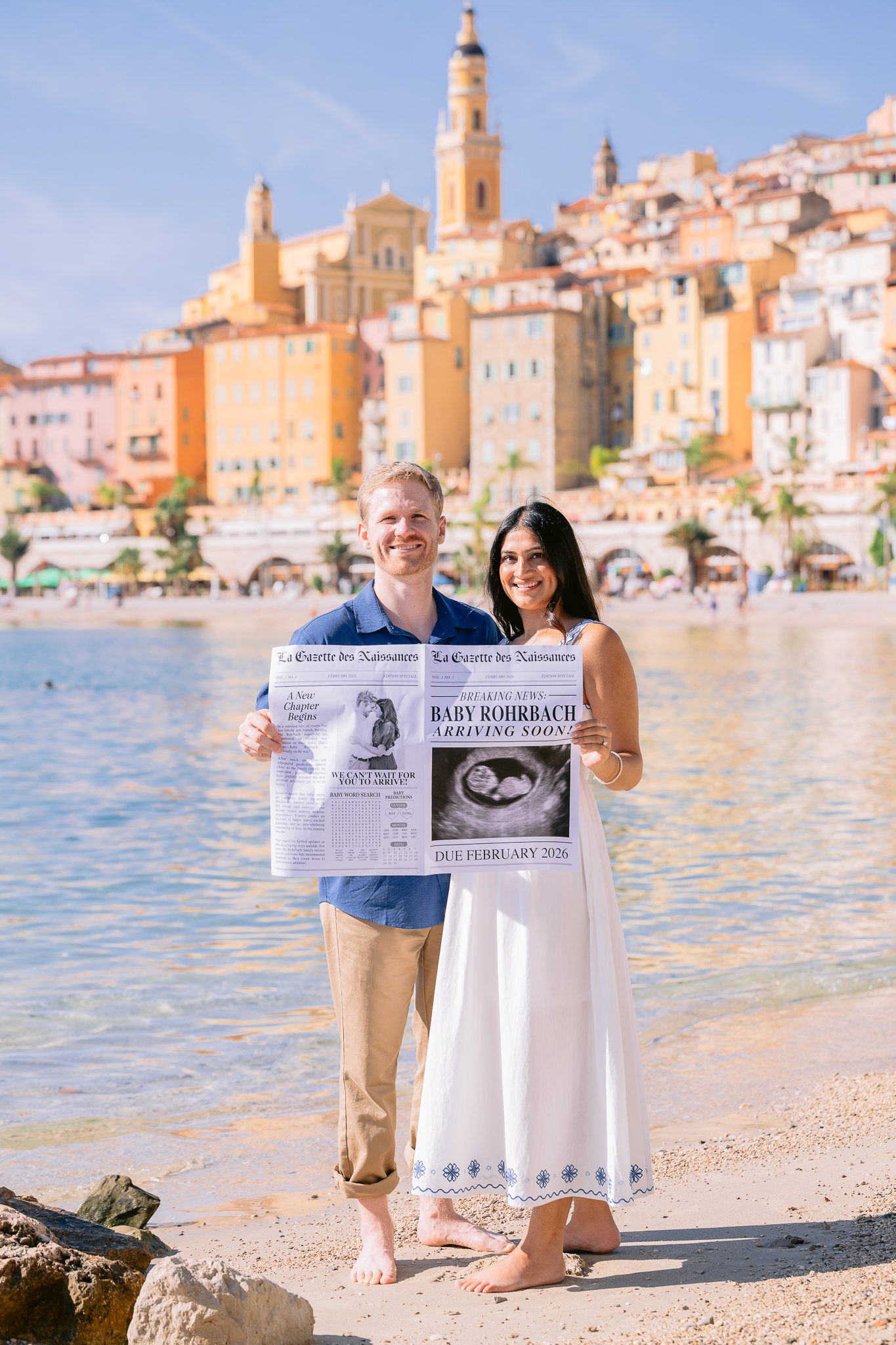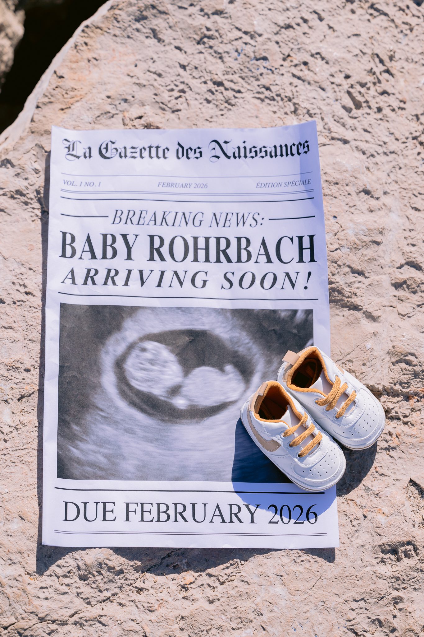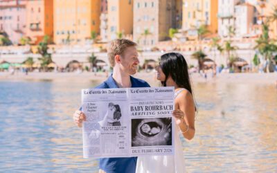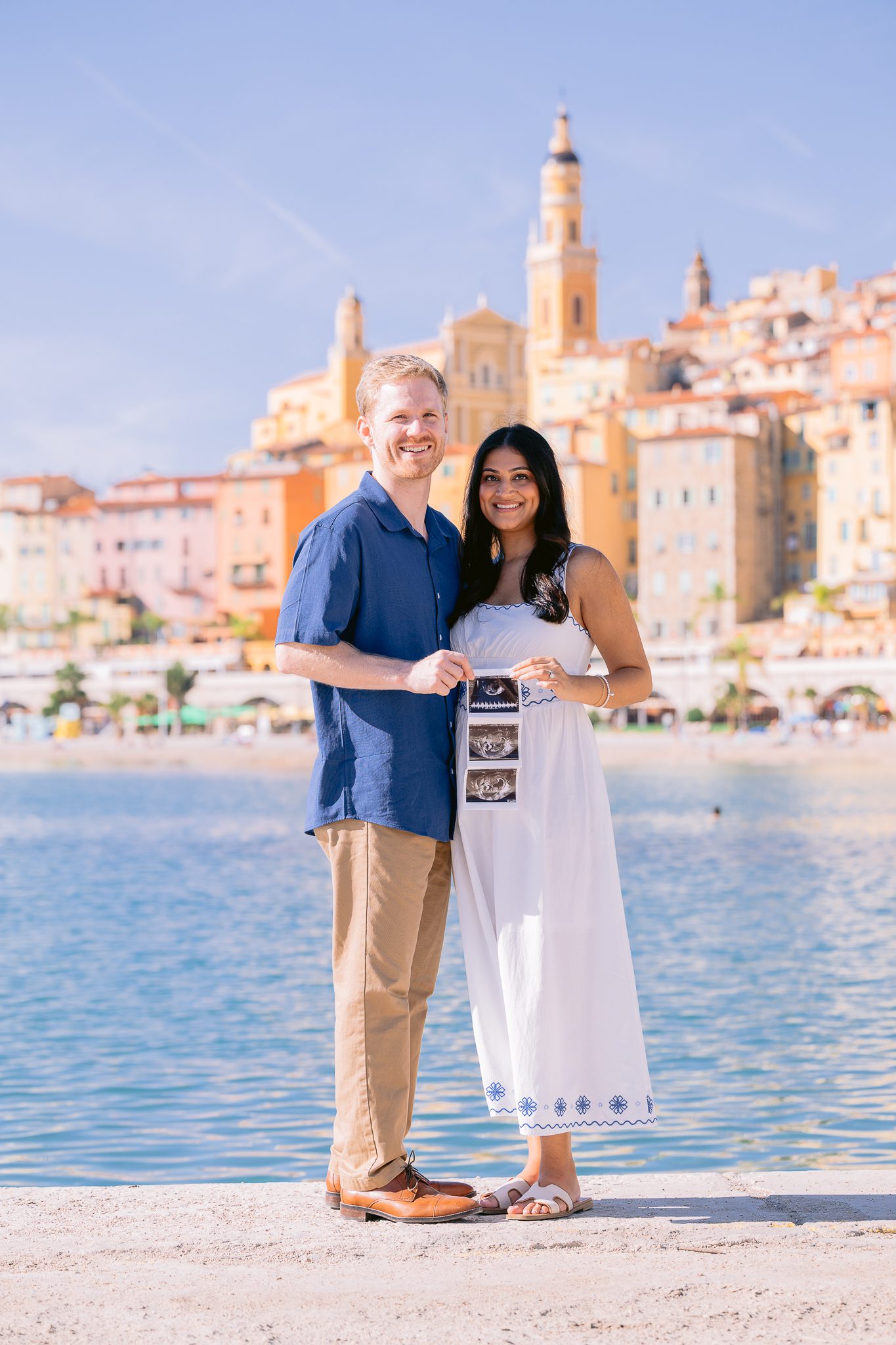 This pregnancy photo shoot in Menton also had something very personal about it, with lovely details around the baby announcement, the ultrasound, a diary imagined for the occasion, very gentle gestures between them, and that seaside light that makes everything so much lighter. Nothing overplayed, nothing staid, just a real moment, in one of the most beautiful settings on the Côte d'Azur.