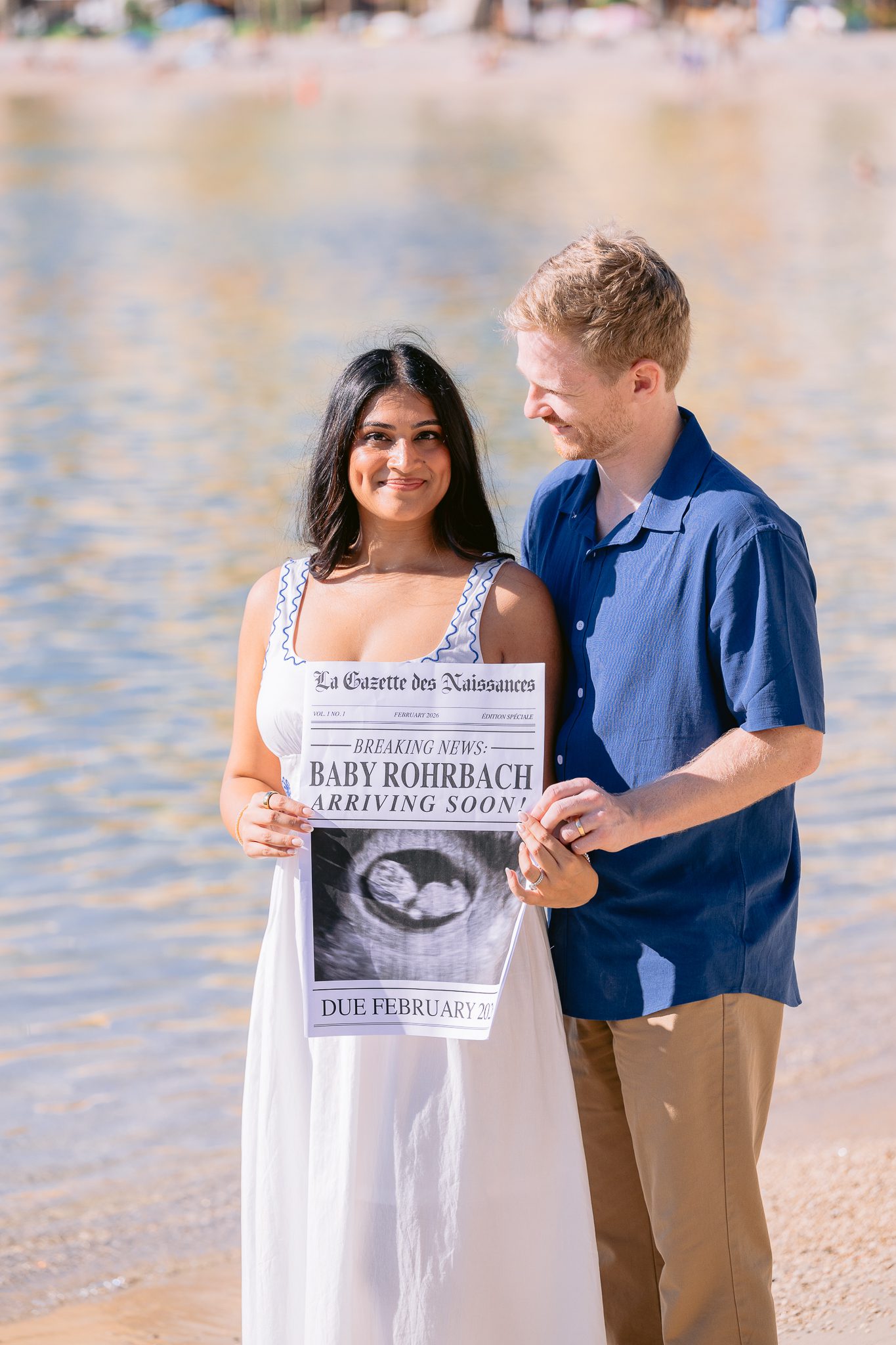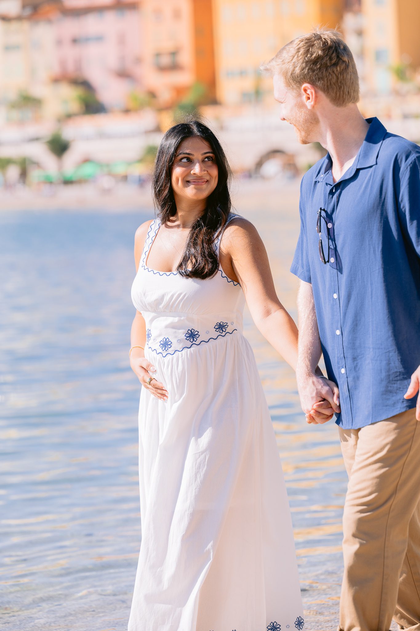 This session was all about simplicity. Glances, smiles, very natural gestures, hands on the stomach, a walk by the water, a shared moment facing the sea. All this is often enough to create powerful images, because the emotion is already there.