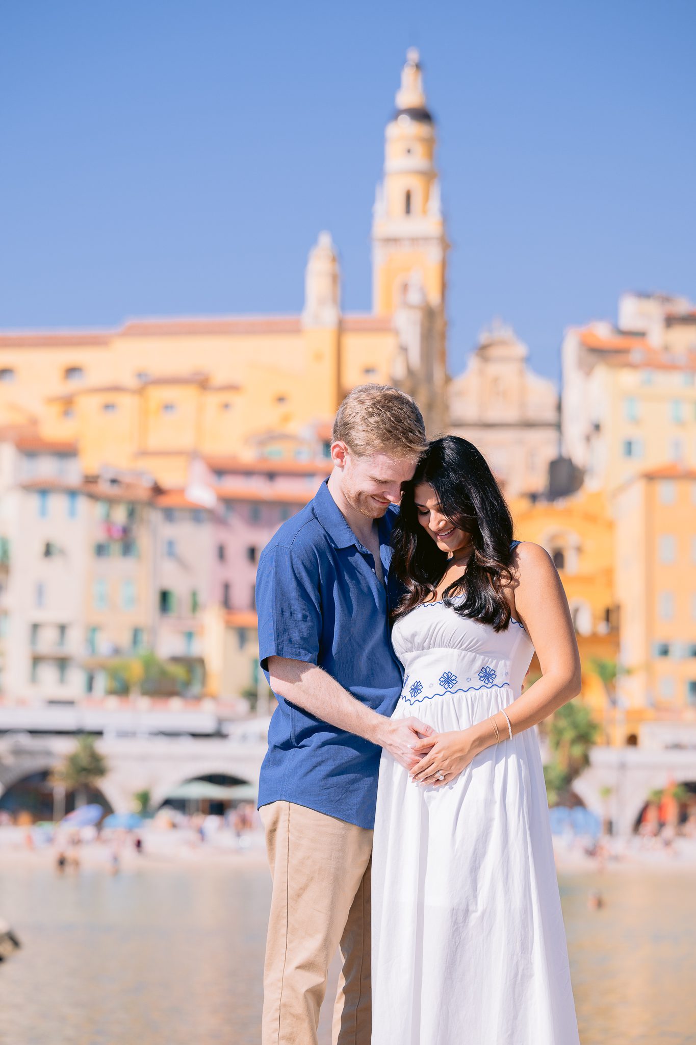 There's something very special about photographing pregnancy in Menton. The town is bright without being cold, colorful without being garish, elegant without being staid. It has that softness that goes so well with this kind of moment.