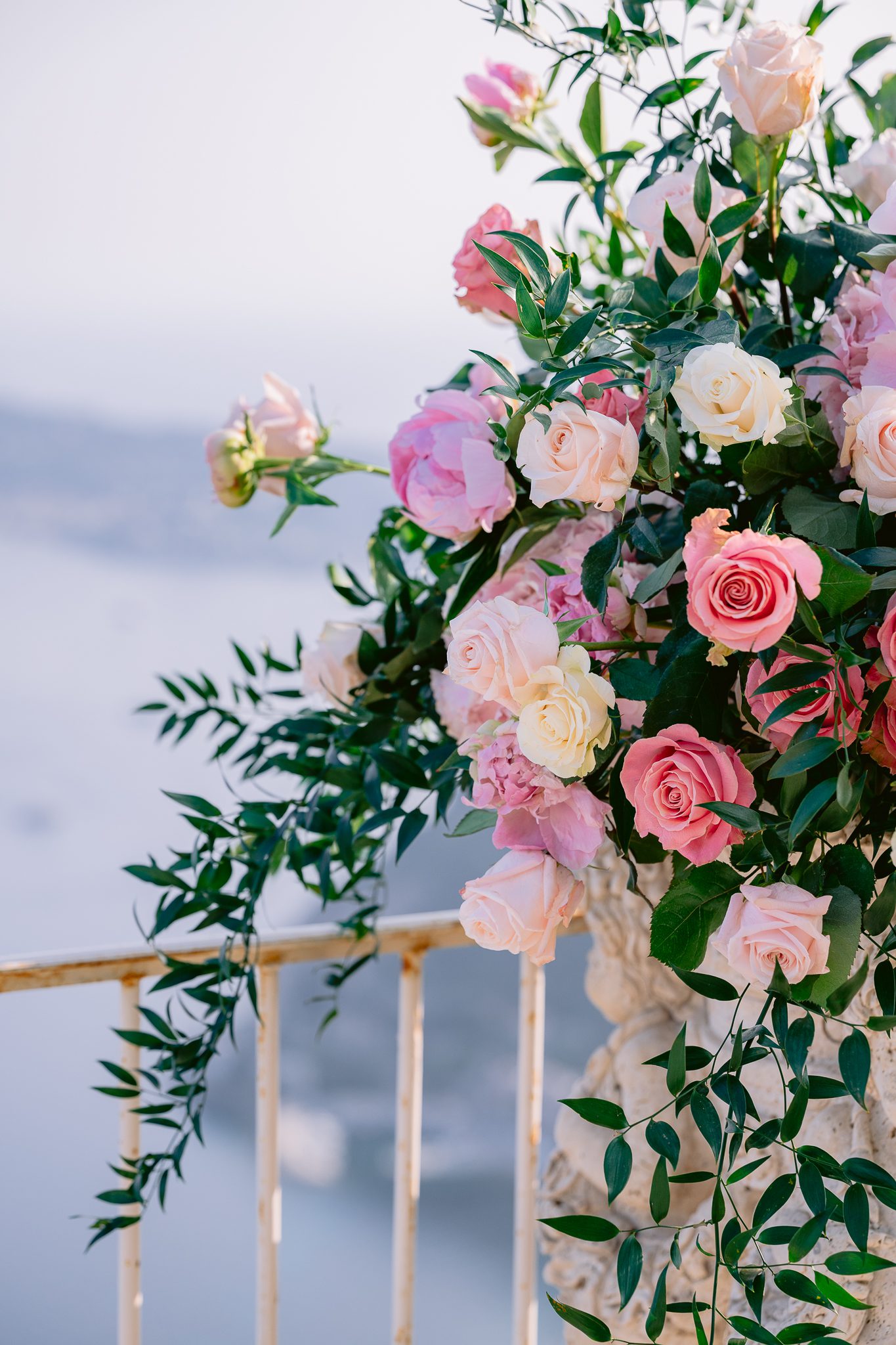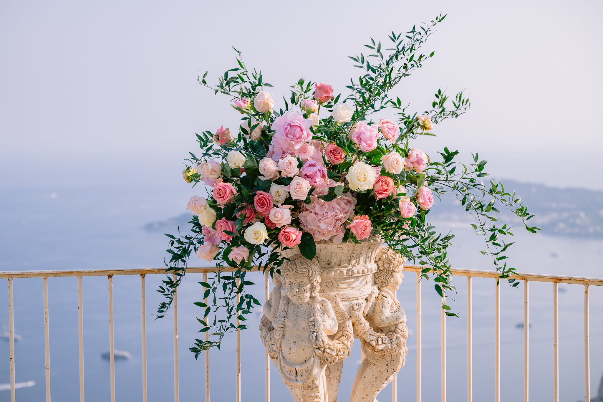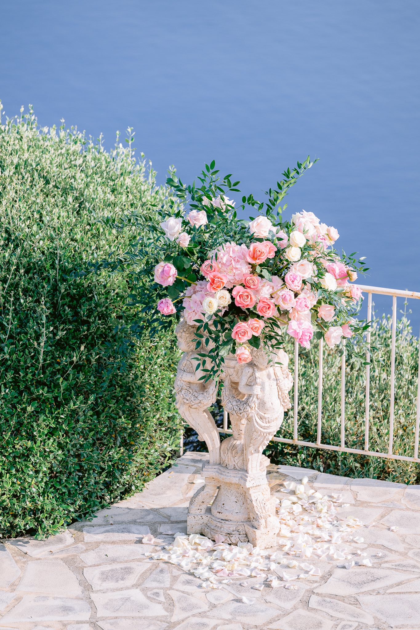 On this terrace, with the sea in the background and the mountains silhouetted against the light, this floral choice worked perfectly. It gave life, color and relief, while maintaining a sense of understated luxury.