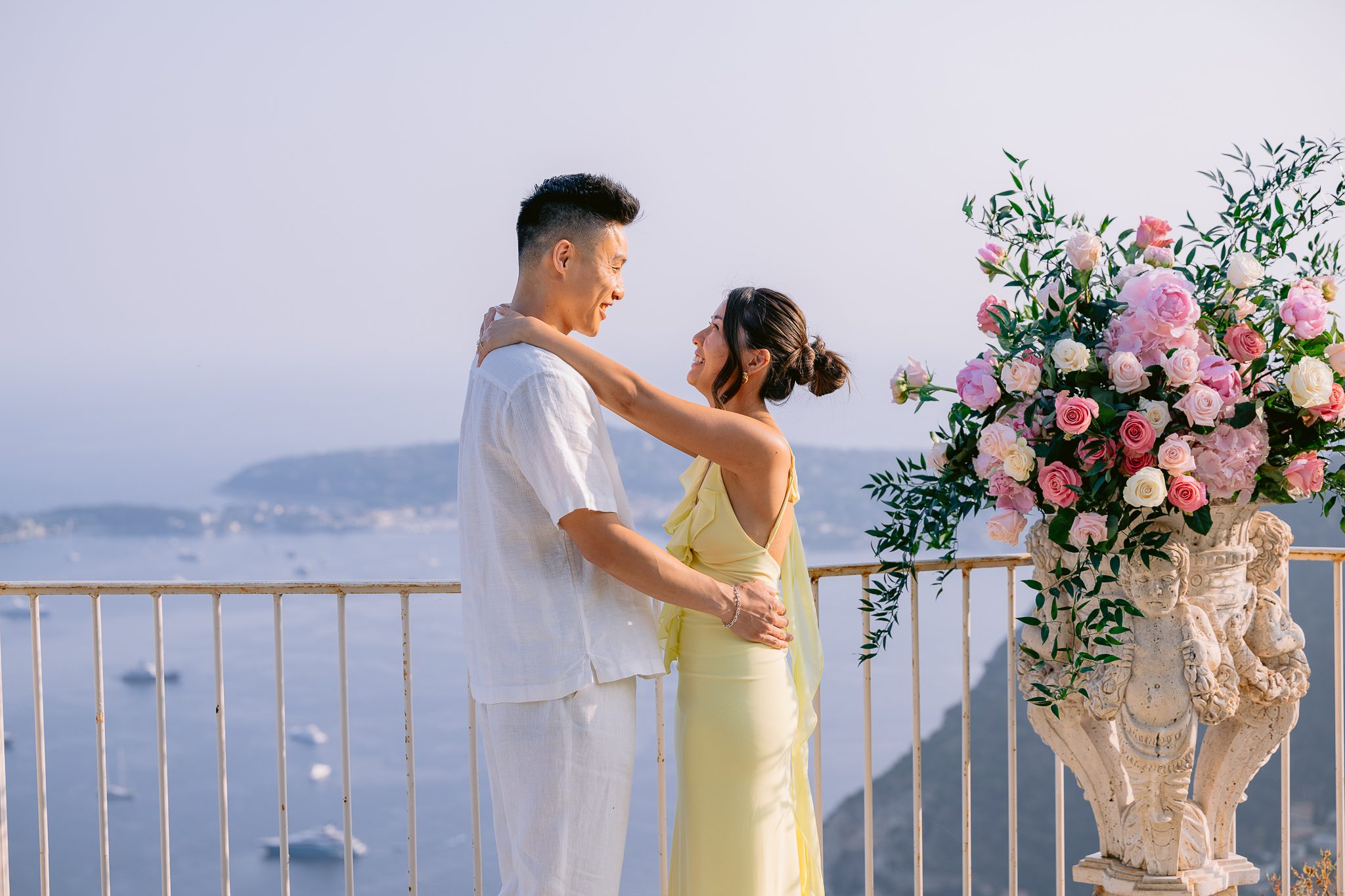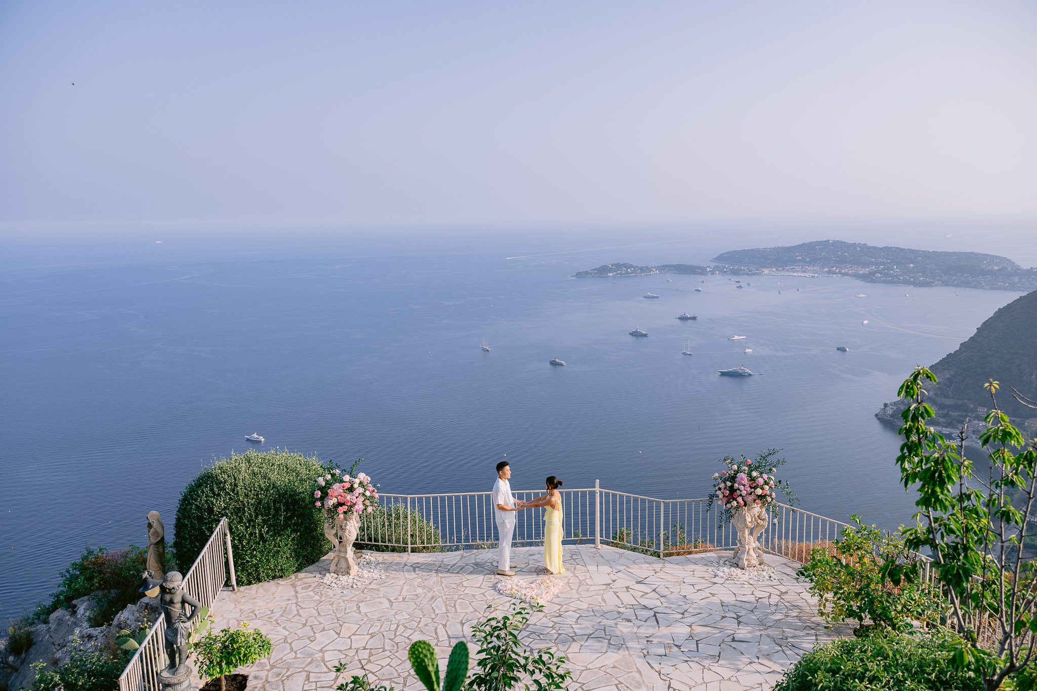 Wedding proposal at the Dôme du Château de La Chèvre d'Or with panoramic sea view