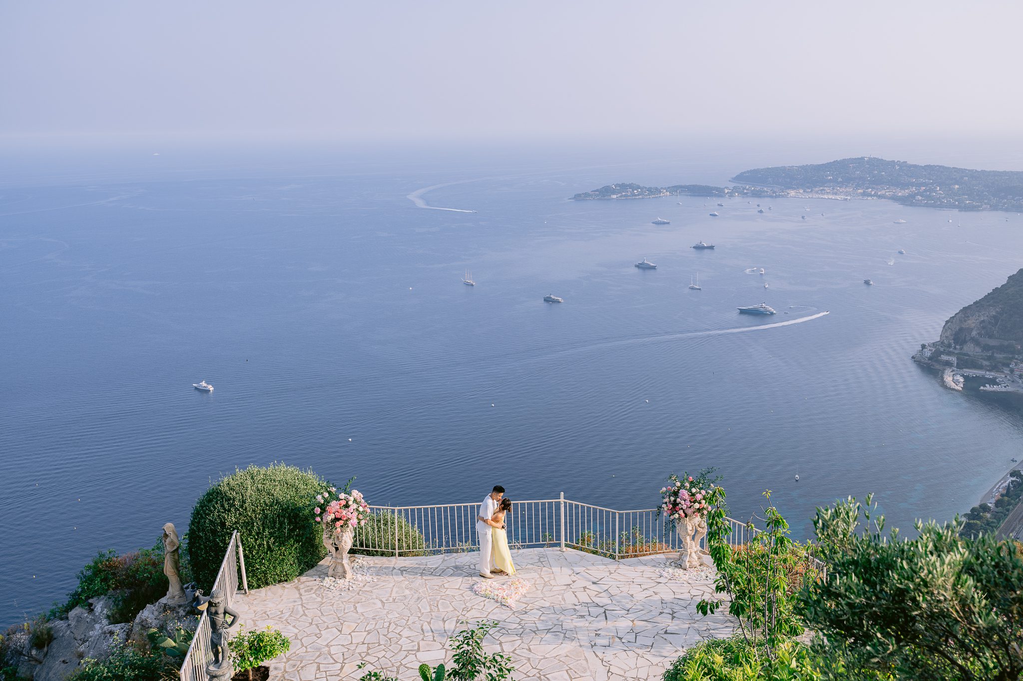 Discover this wedding proposal at Plateau de la Rose at La Chèvre d'Or in Èze, with spectacular sea views, red roses and a romantic ambience.