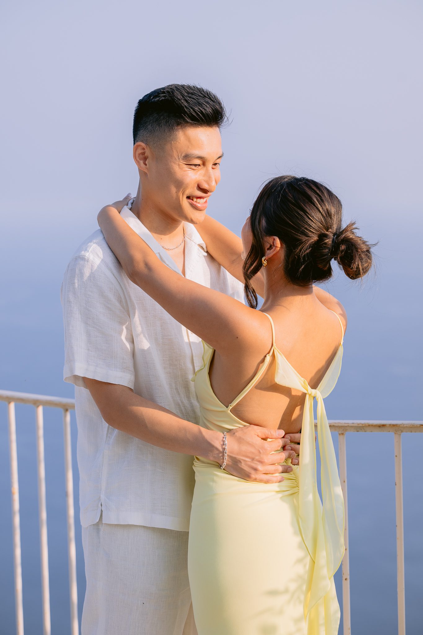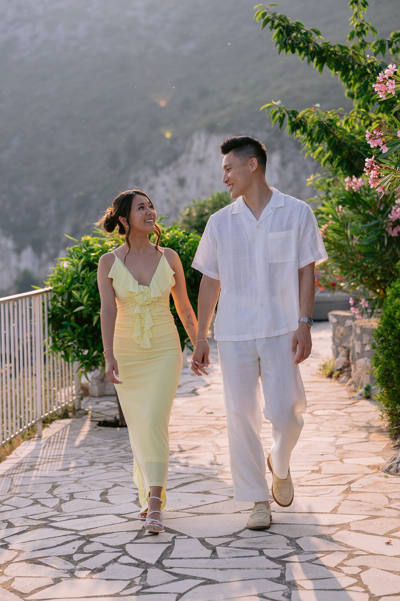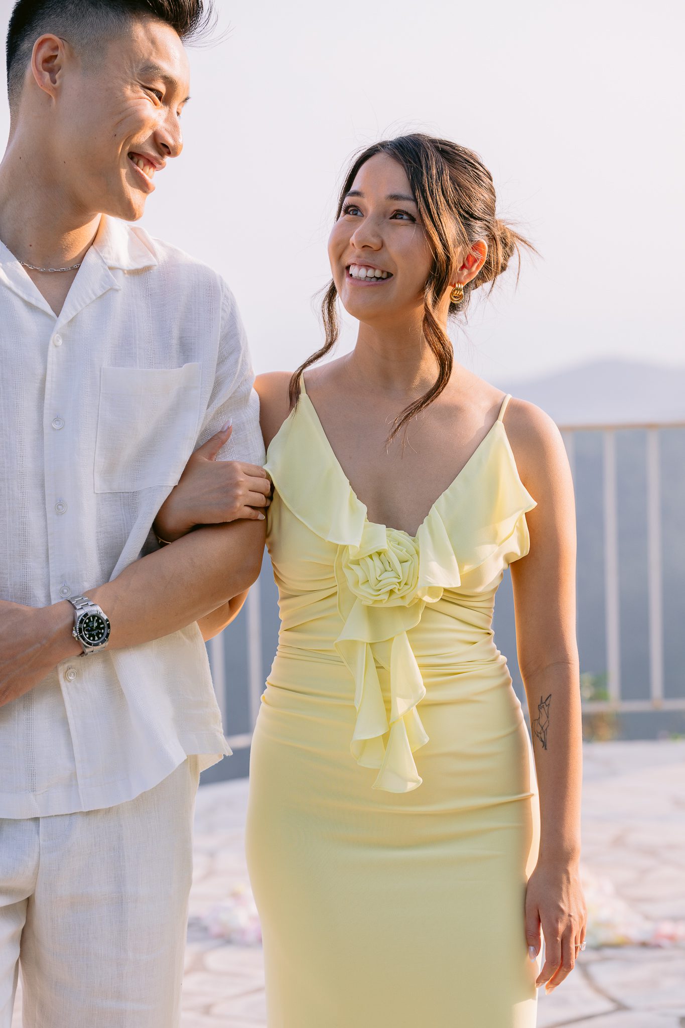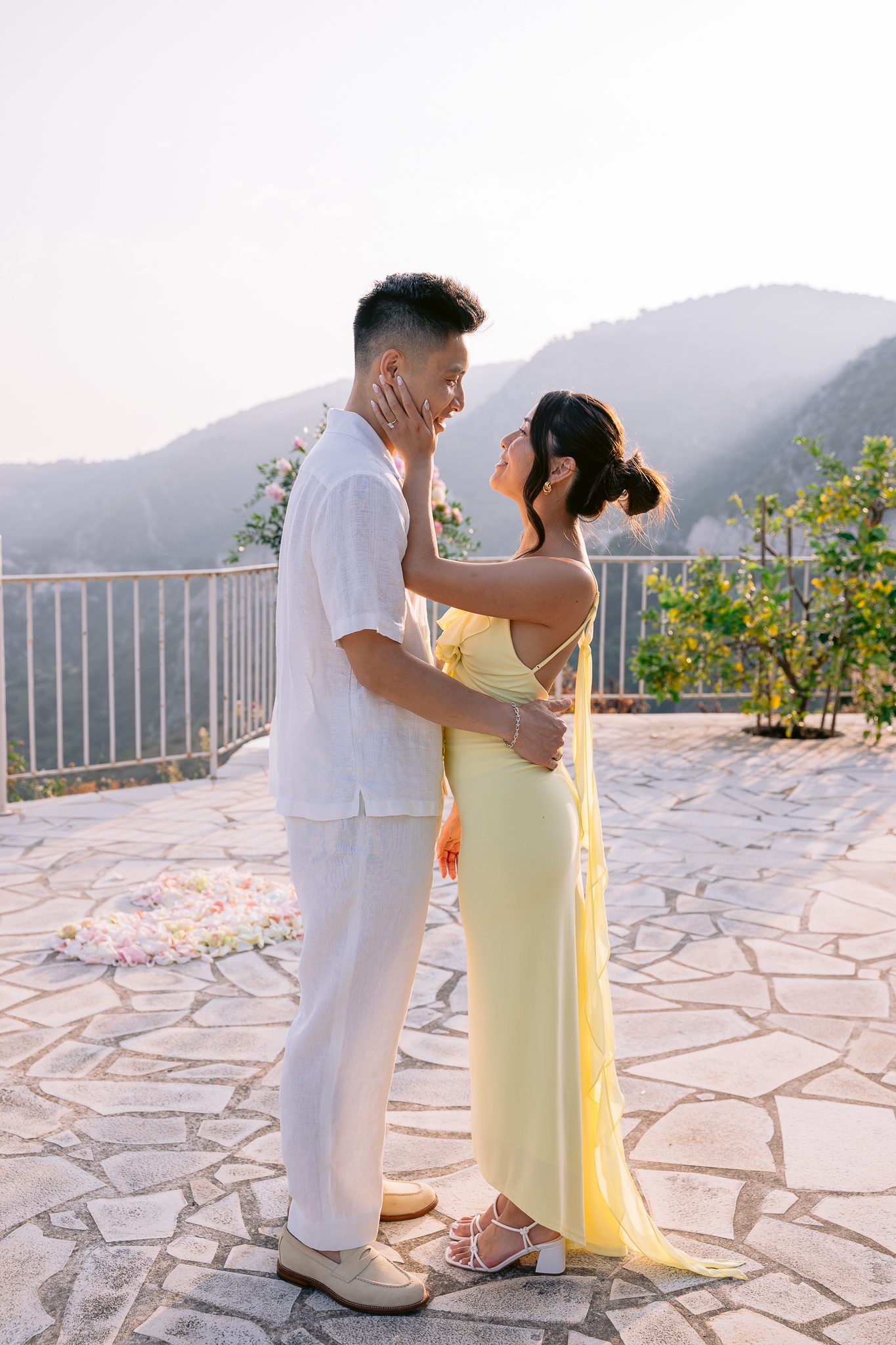 Light plays a huge role in a marriage proposal, and here it was one of the strongest elements. At the end of the day, the terrace tells a different story. The air becomes calmer, the colors take on a patina, the sea seems softer, and the whole setting gains in elegance.