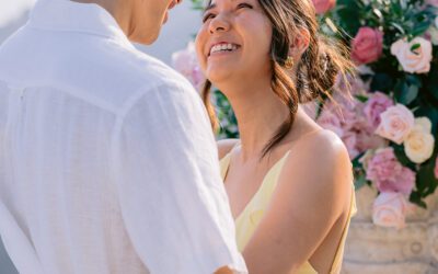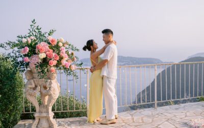 Discover this marriage proposal at the Jardins de La Chèvre d'Or in Èze, in a lush, romantic and elegant setting, with sea views and photos after the proposal.