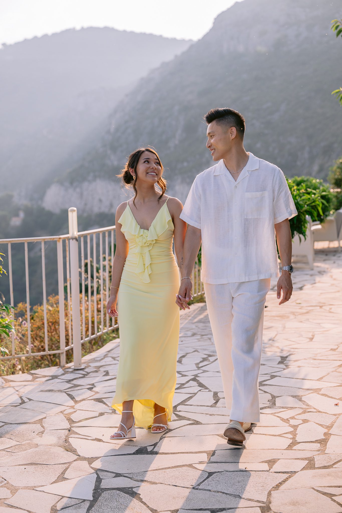 Sunset proposal at La Chèvre d'Or on the Café du Jardin's Third Terrace