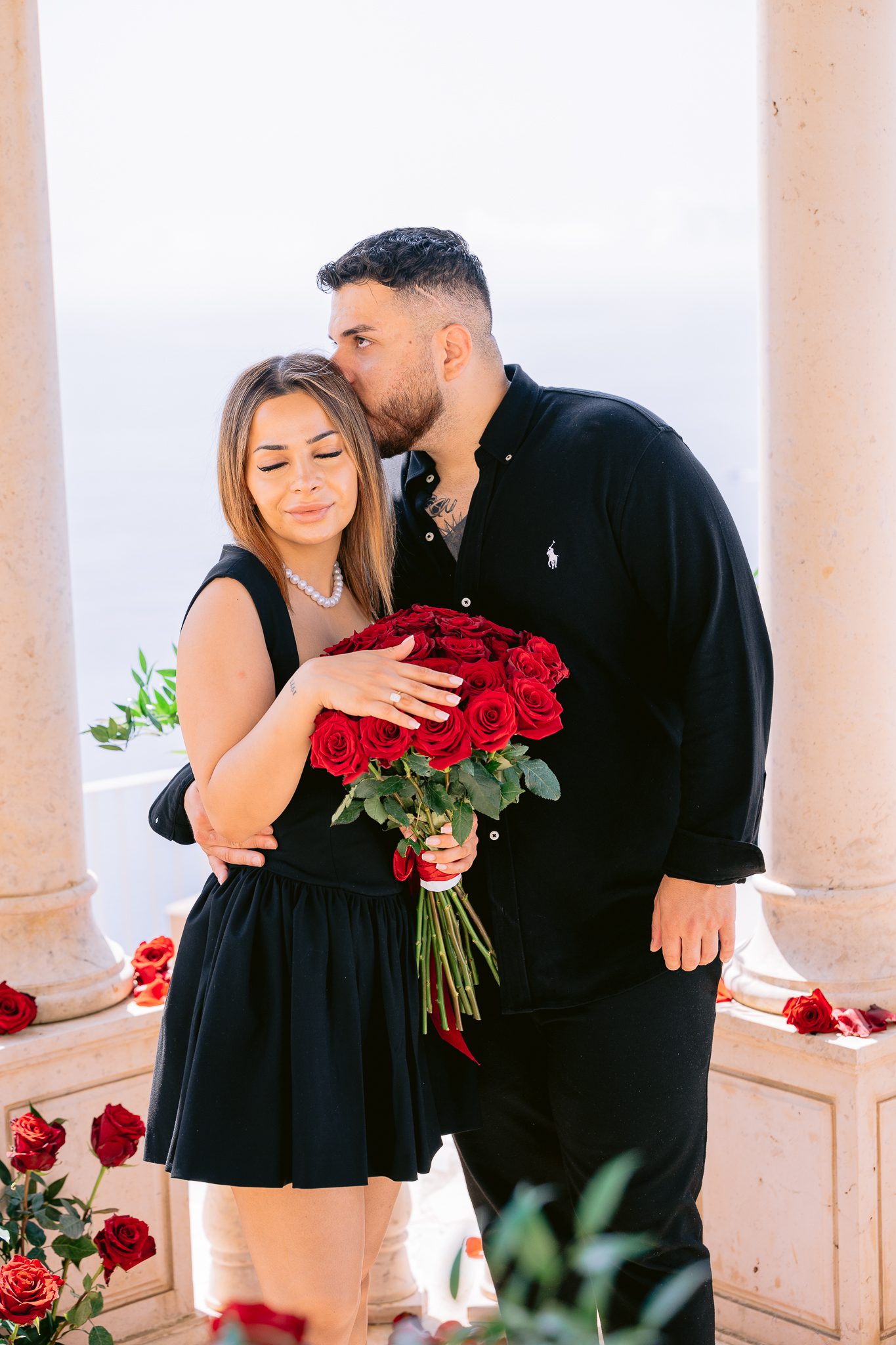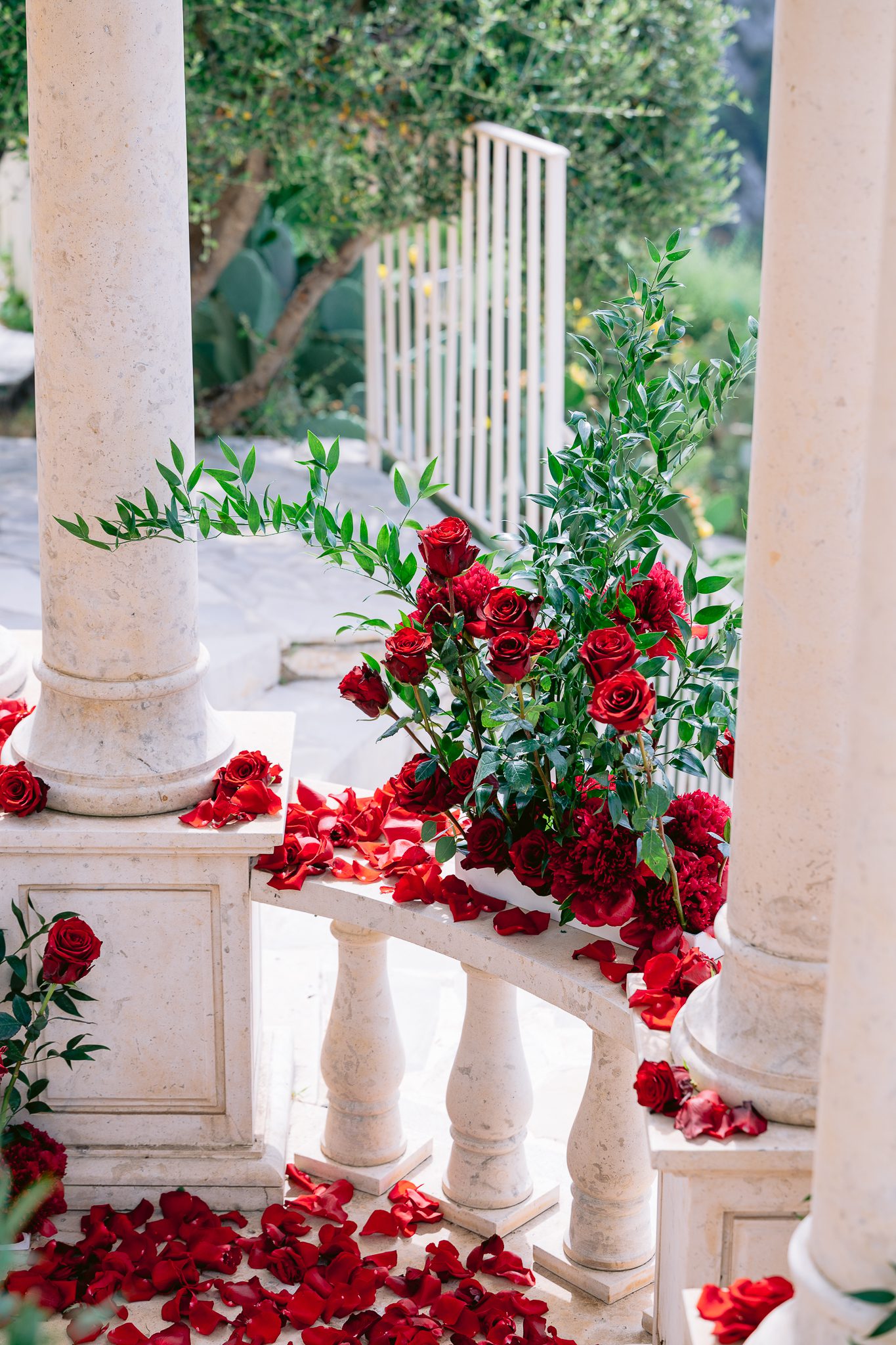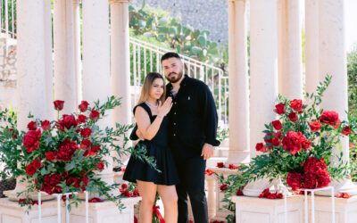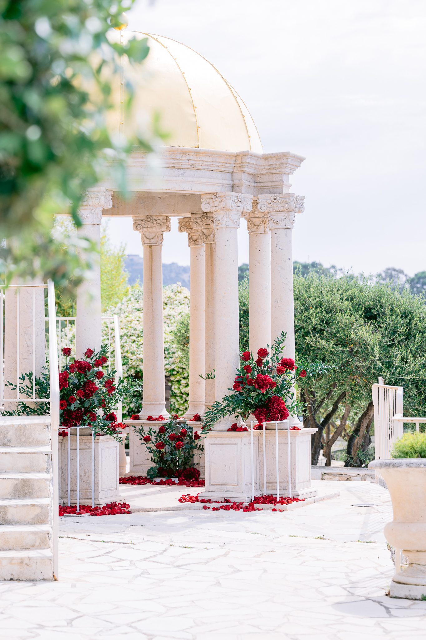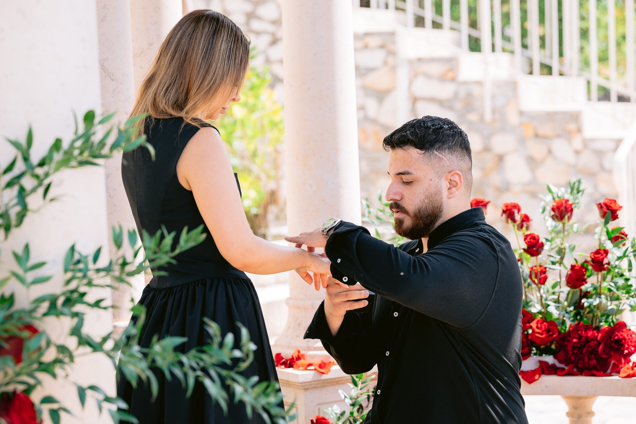 Discover this marriage proposal at the Dôme de La Chèvre d'Or during the day, with sea views, red roses and an elegant, natural and luminous ambience in Èze.