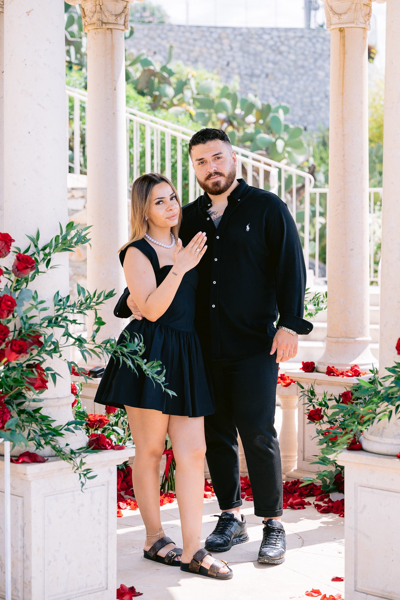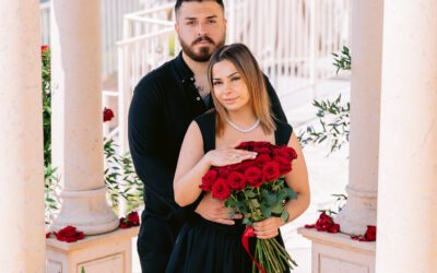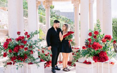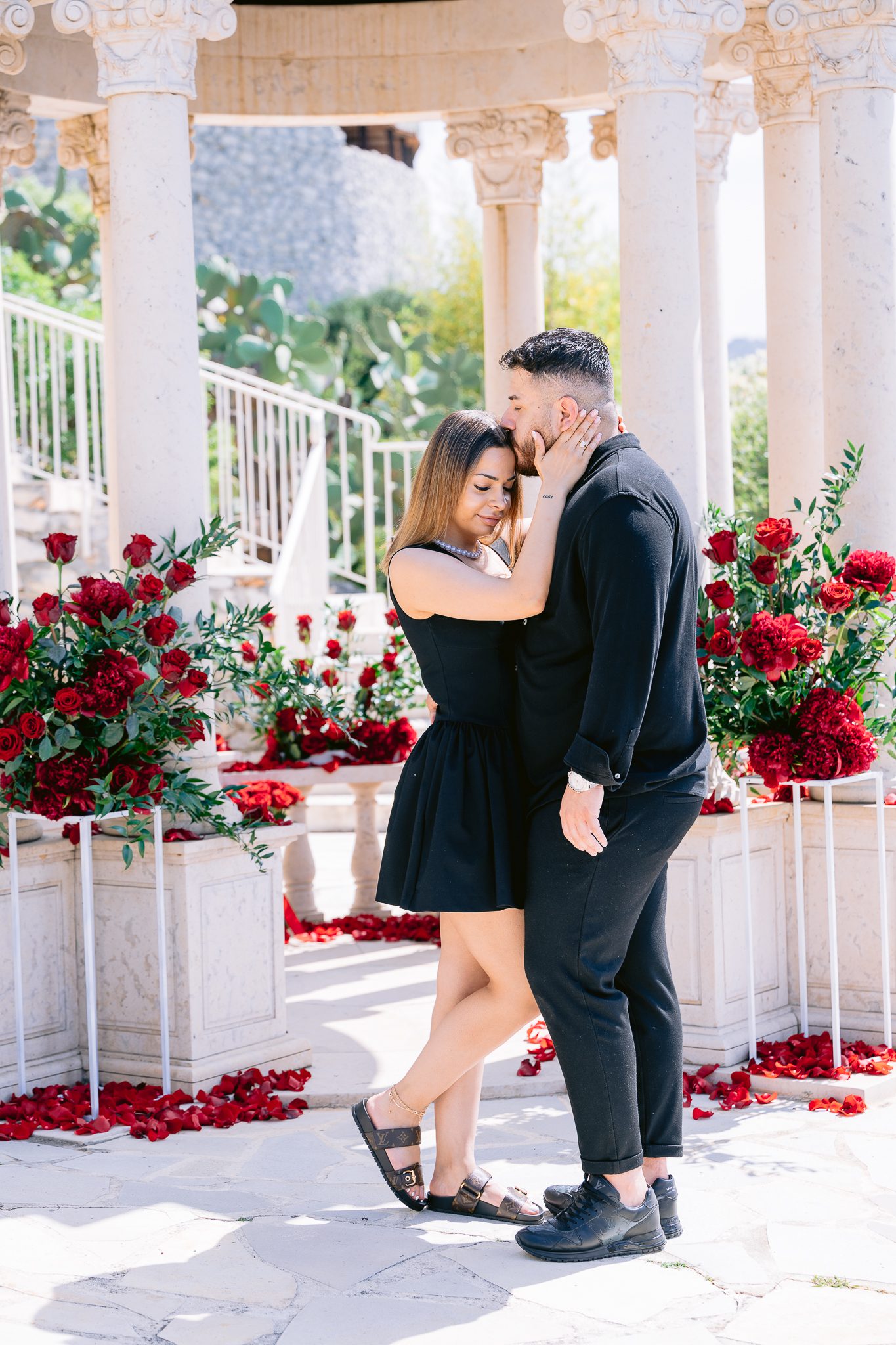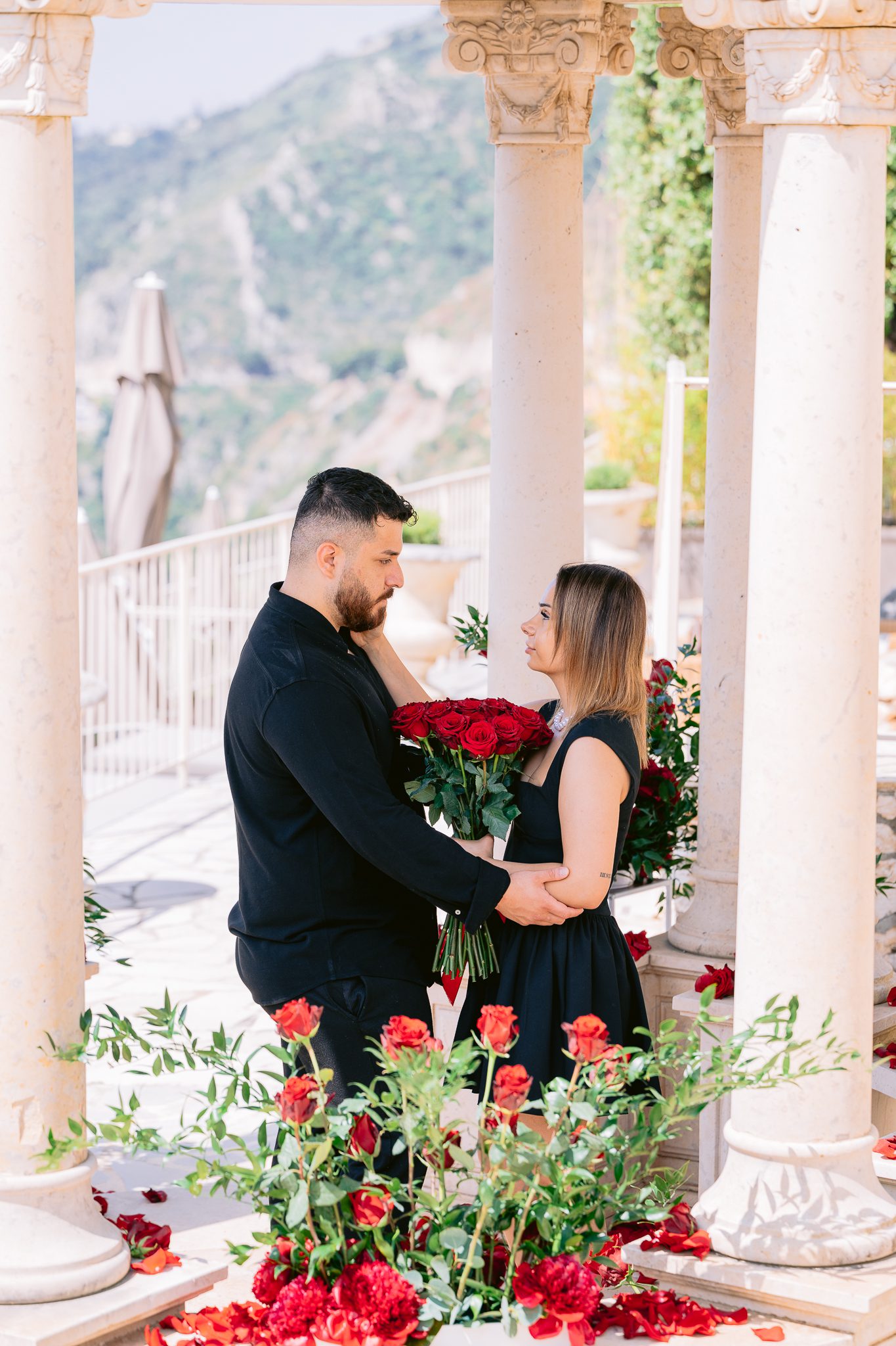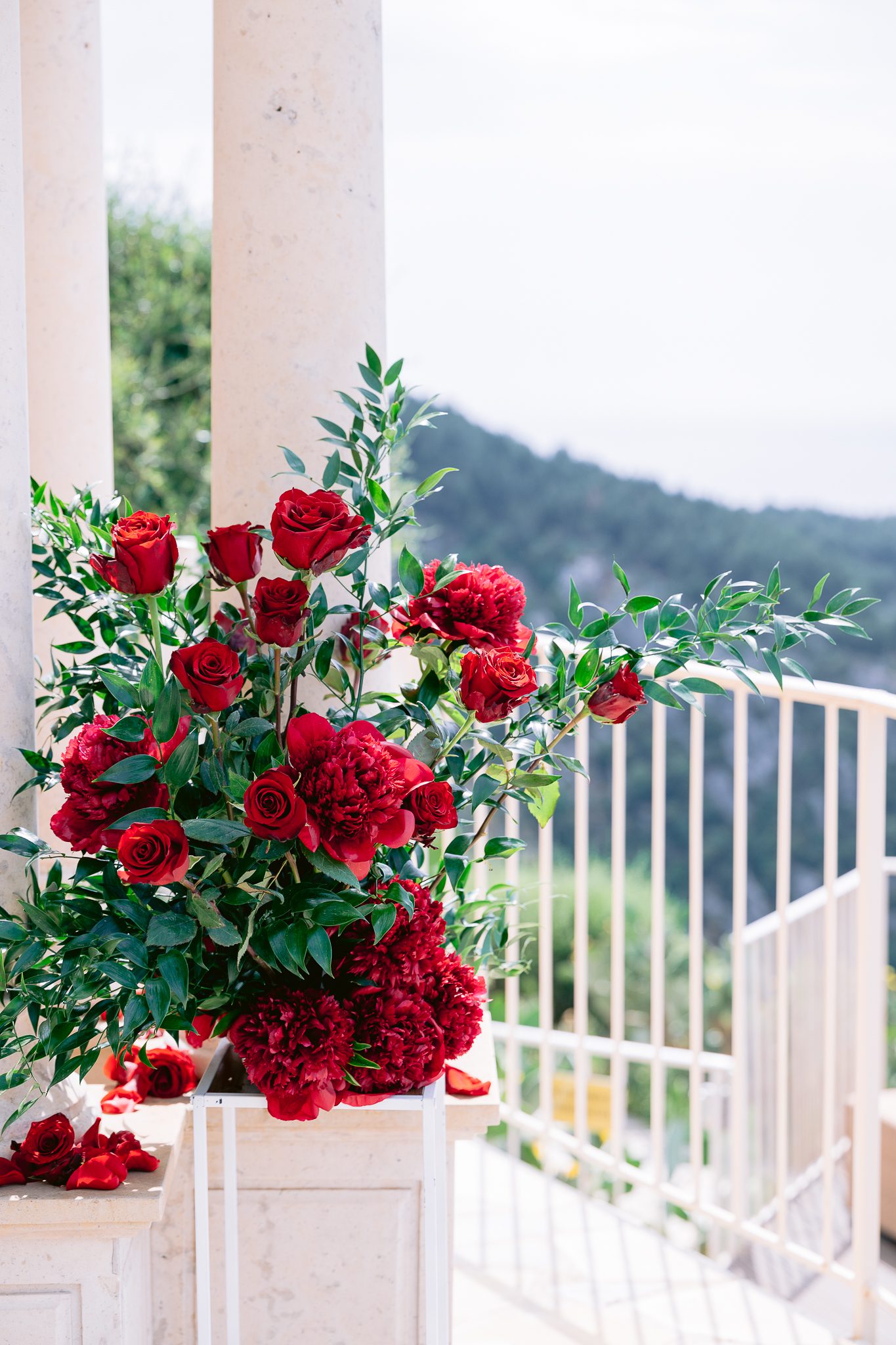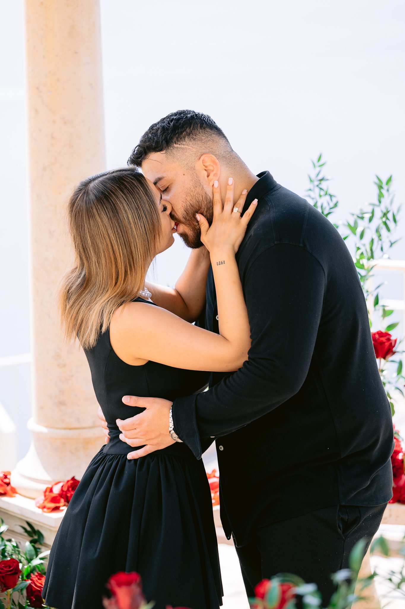 Discover this marriage proposal at the Dôme de La Chèvre d'Or during the day, with sea views, red roses and an elegant, natural and luminous ambience in Èze.