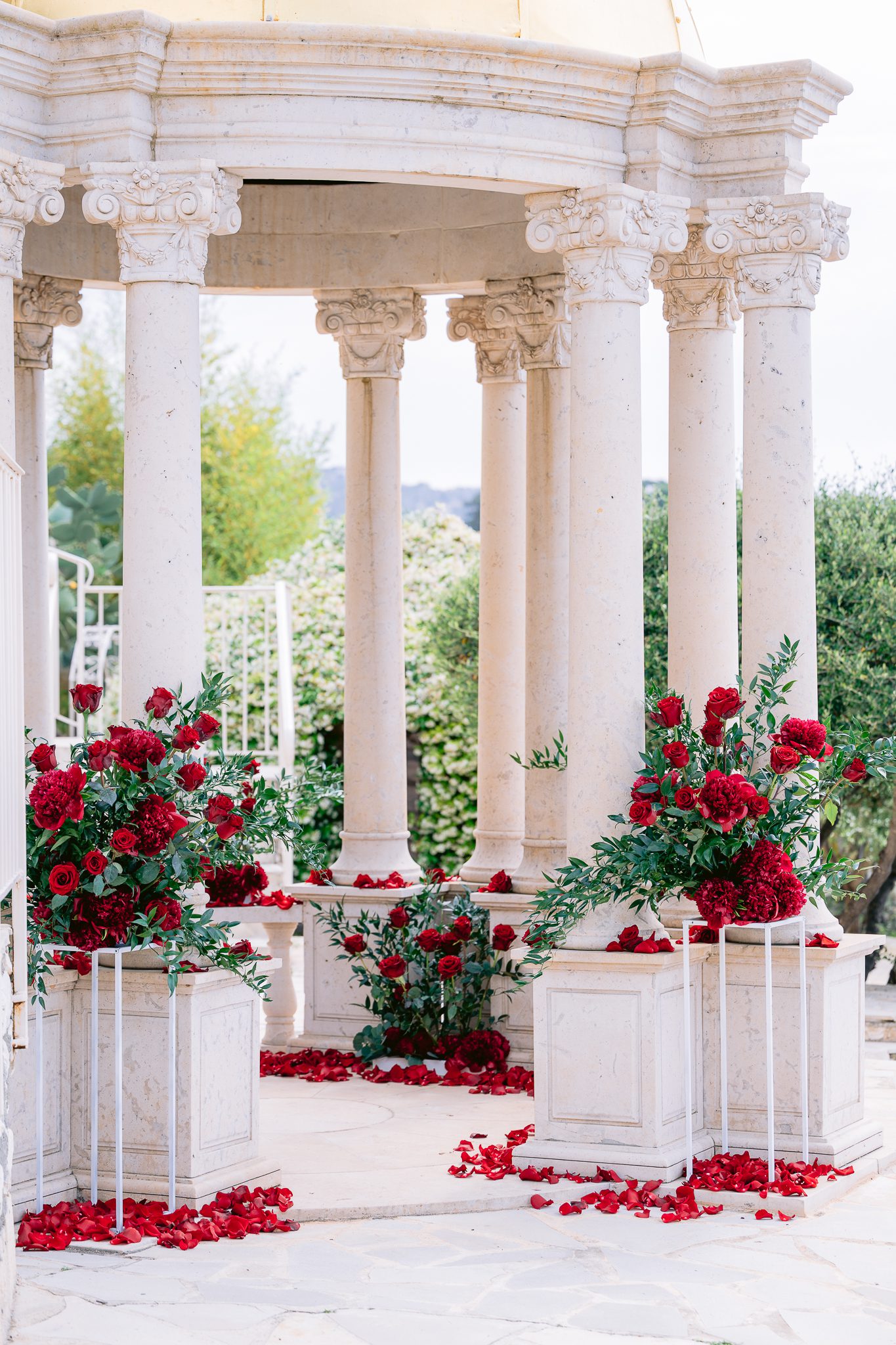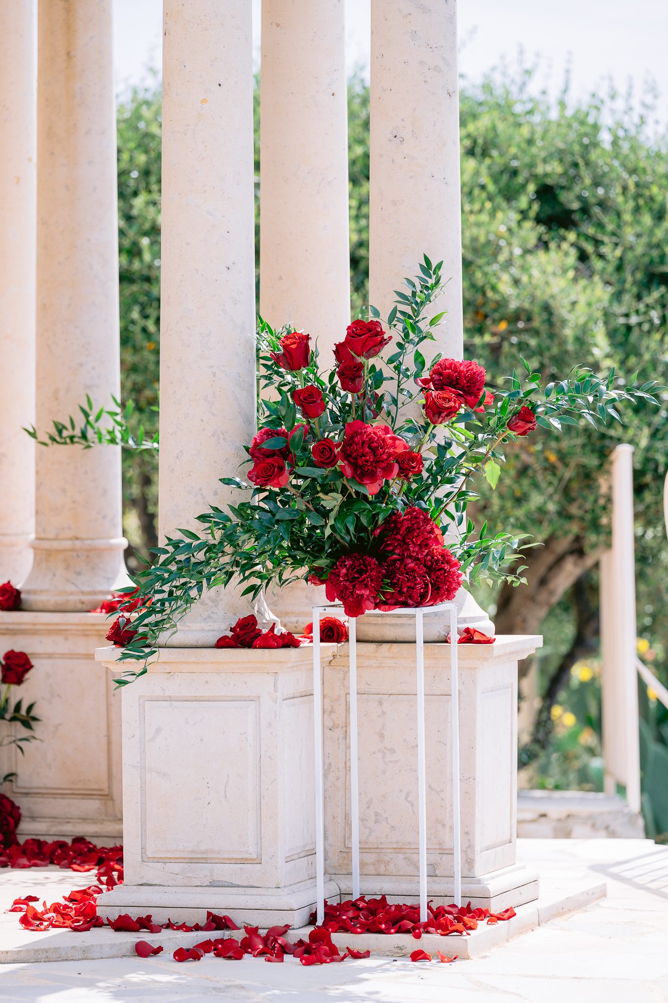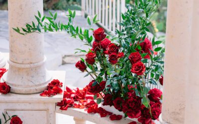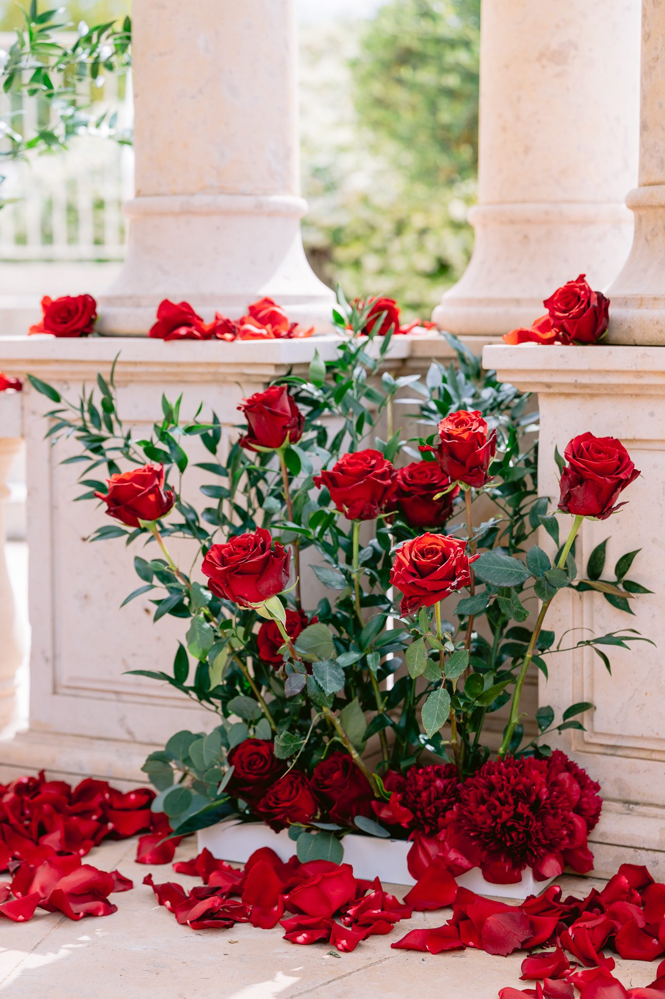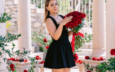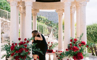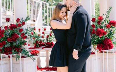 Discover this marriage proposal at the Dôme de La Chèvre d'Or in Èze, with bouquets of red roses, candles, petals and floral decorations in a spectacular setting.