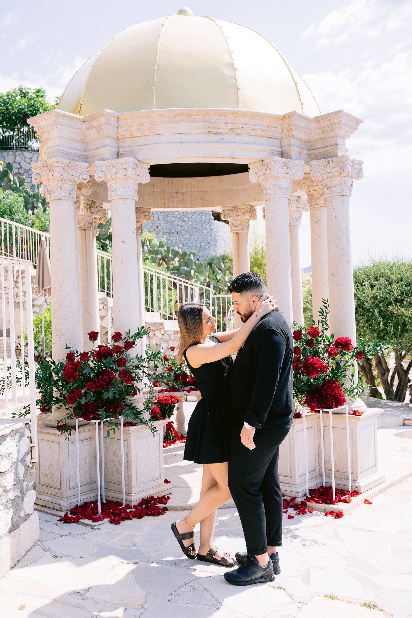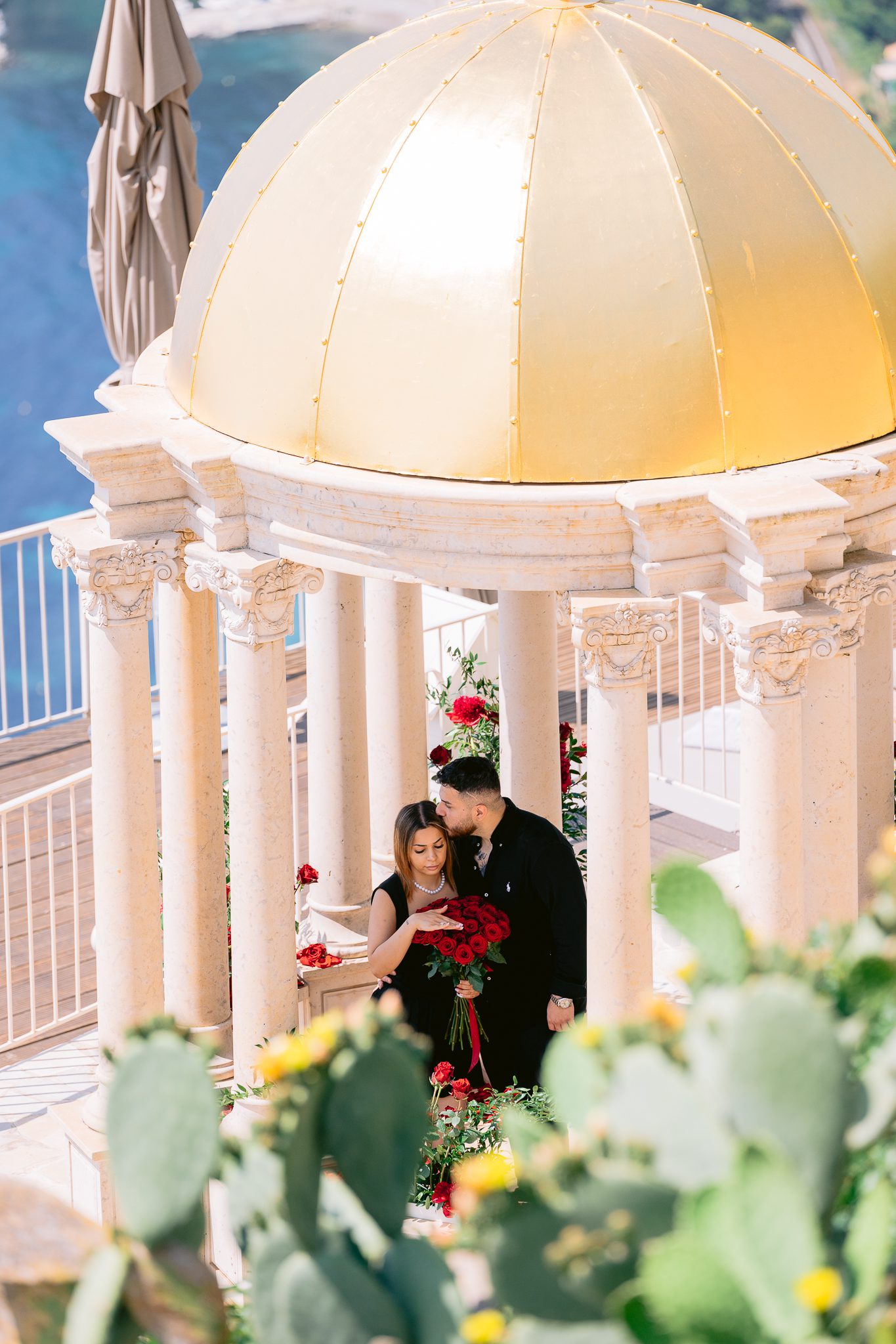 Wedding proposal at La Chèvre d'Or Temple of Love with panoramic sea view