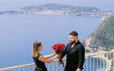Discover this marriage proposal at the Jardins de La Chèvre d'Or in Èze, in a lush, romantic and elegant setting, with sea views and photos after the proposal.