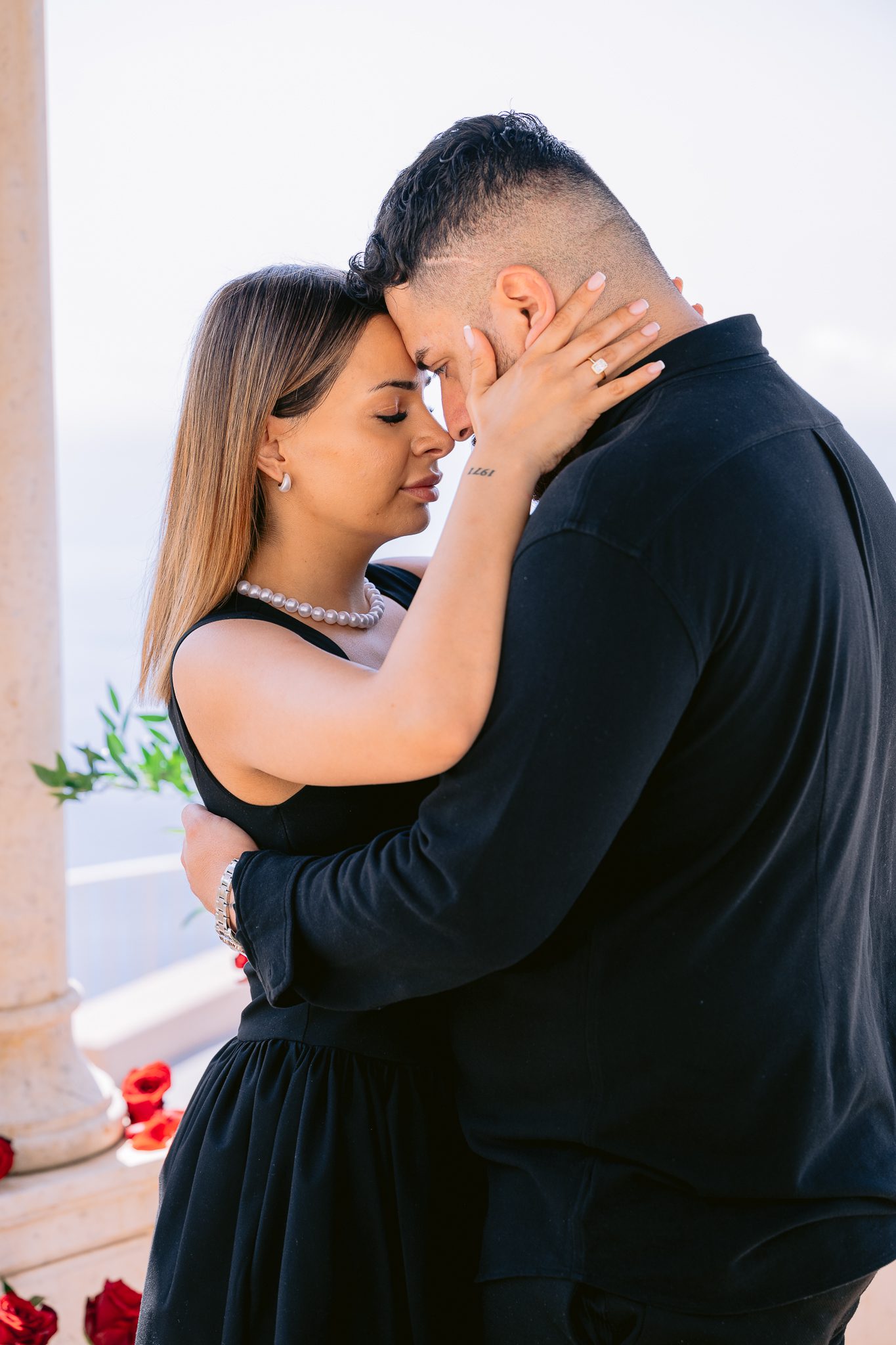 It's also a place that works very well for photography, because it allows for several moods in a single session. We can start with the moment of the proposal in the heart of the Dome, then continue with more open portraits facing the sea, around the balustrades, with the landscape in the background. The result is a coherent, varied and very elegant reportage.